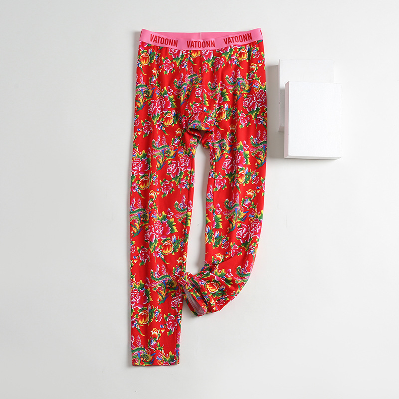 남자의 가을과 겨울 따뜻한 바지 가을 바지 유행 높은 탄성 넓은 허리 면 동북 큰 꽃 바디 피팅 바지 얇은 중간 허리 바지스토어 가기
