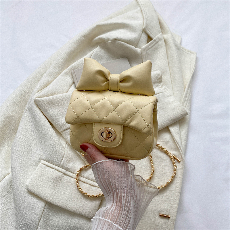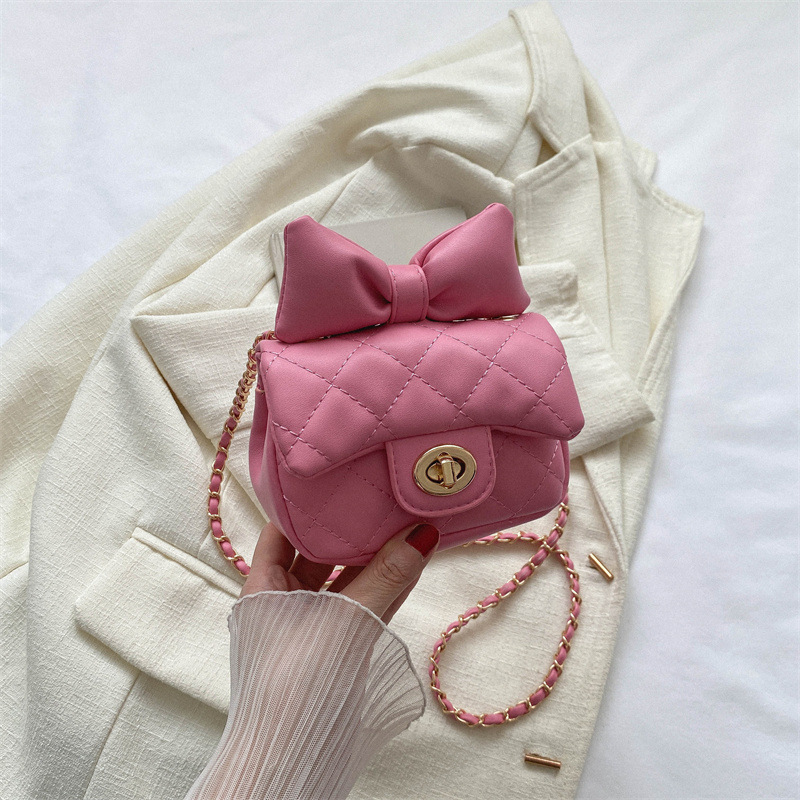 2024 새로운 공주 어린이 가방 소녀의 활 샤넬 미니 체인 크로스 바디 가방 작은 소녀의 가방