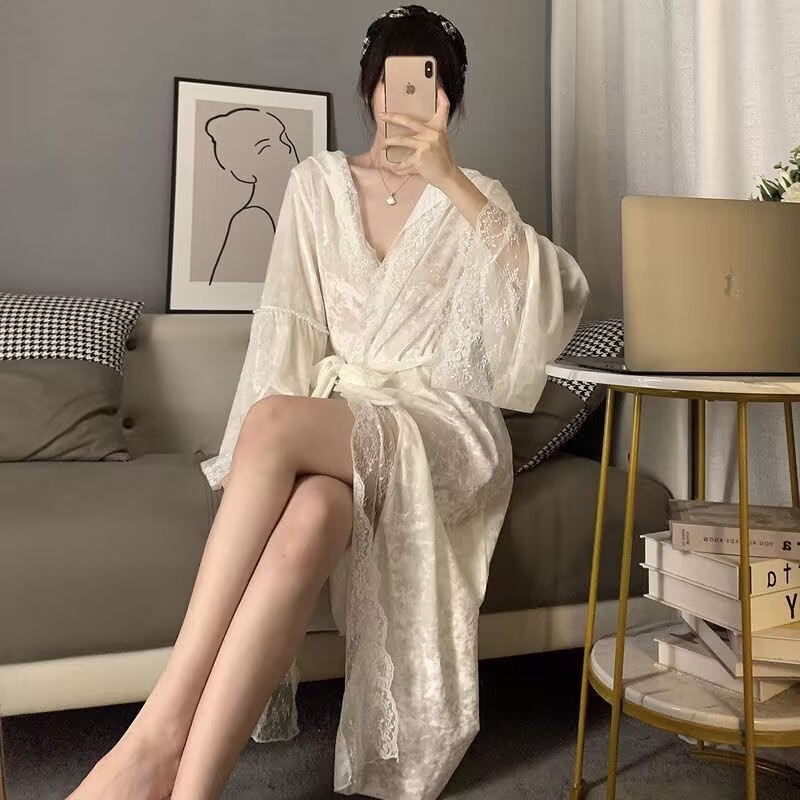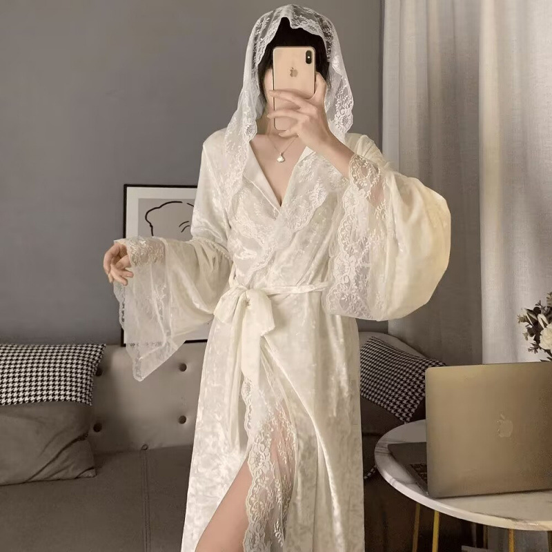 잠옷 여성의 가을과 겨울 잠옷 섹시한 목욕 가운 레이스 순수 궁전 스타일 홈 옷 긴 플러스 사이즈 신부 아침 가운