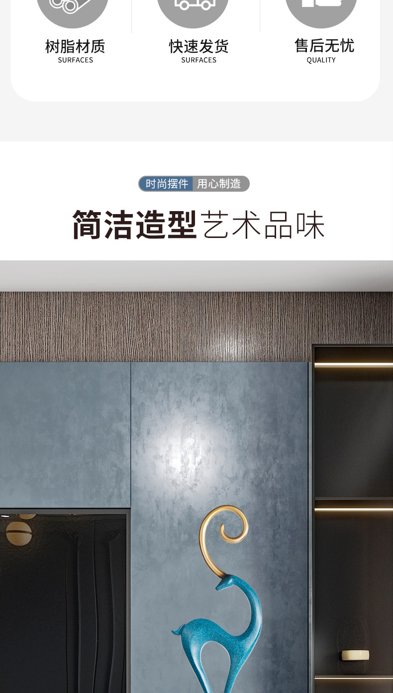 높은 가치의 사슴 조각 장식 모델 룸 호텔 로비 거실 입구 빛 럭셔리 하이 엔드 아트 장식스토어 가기