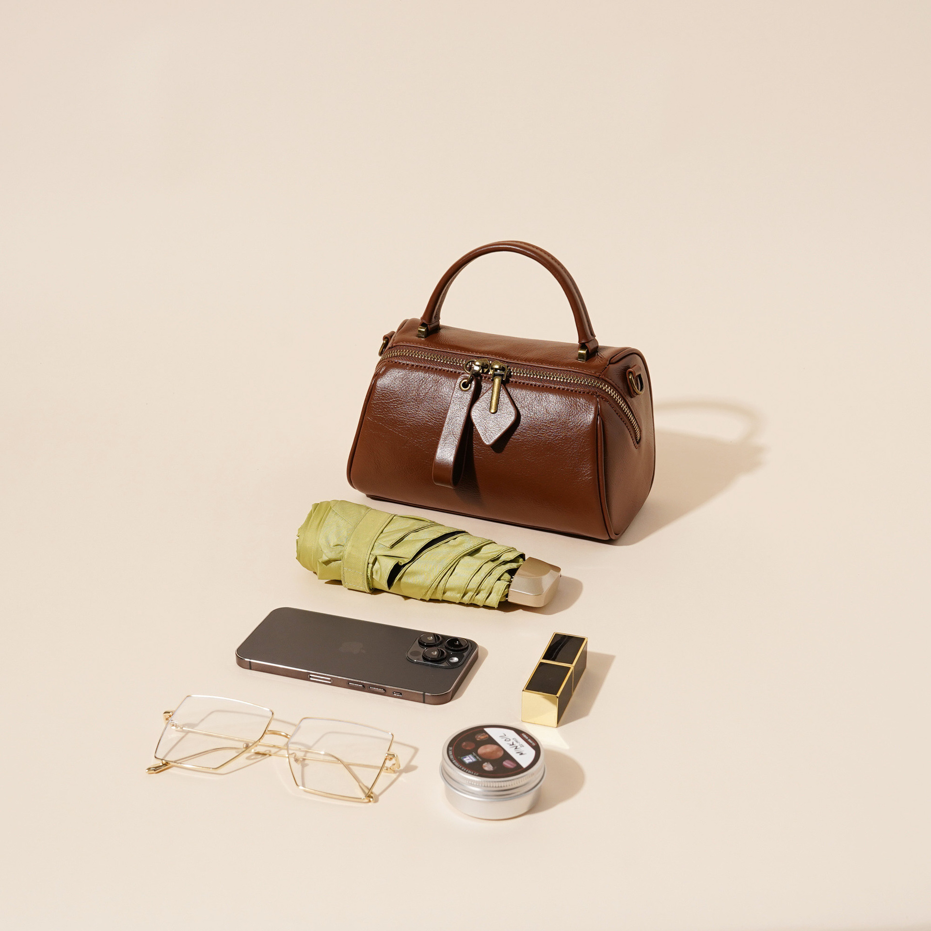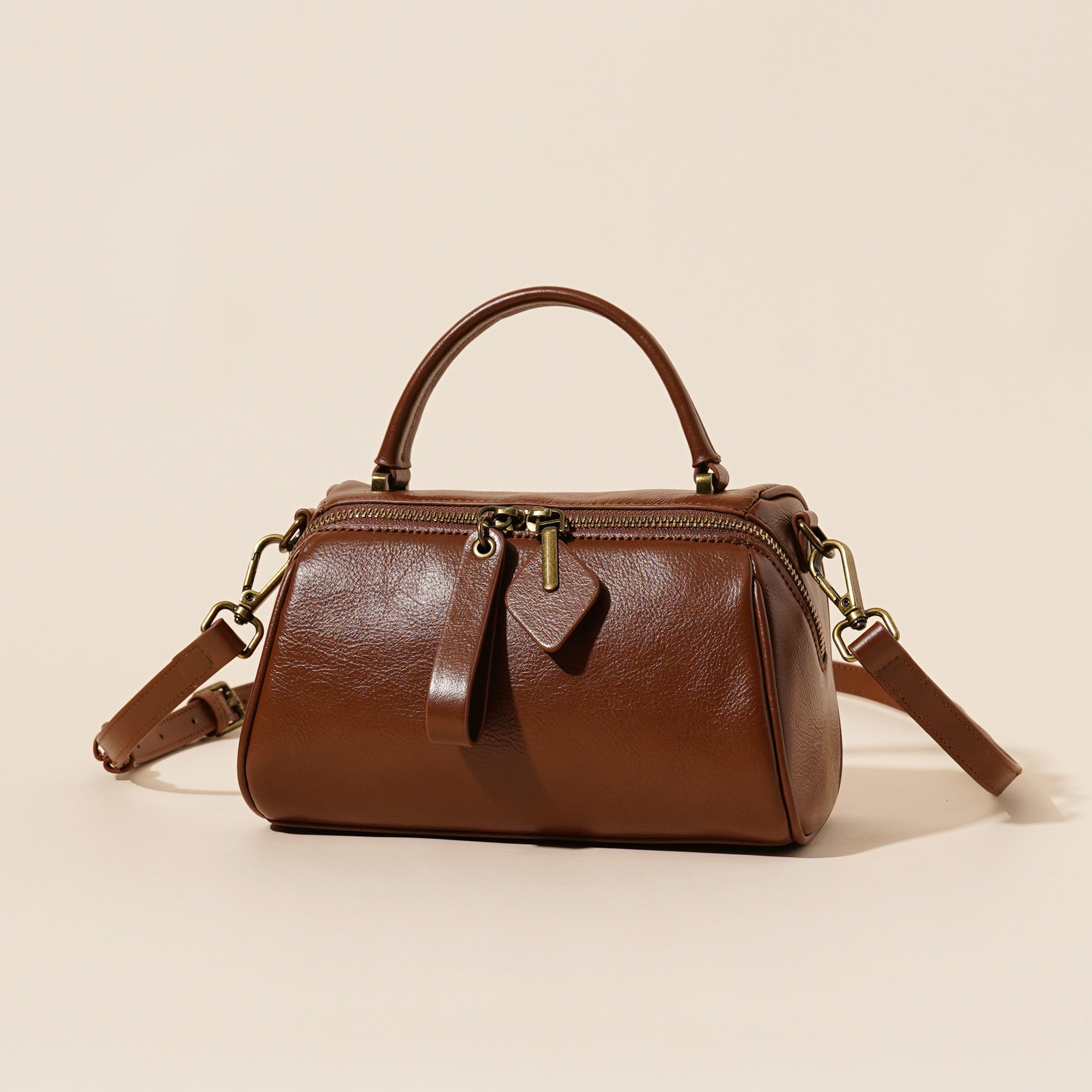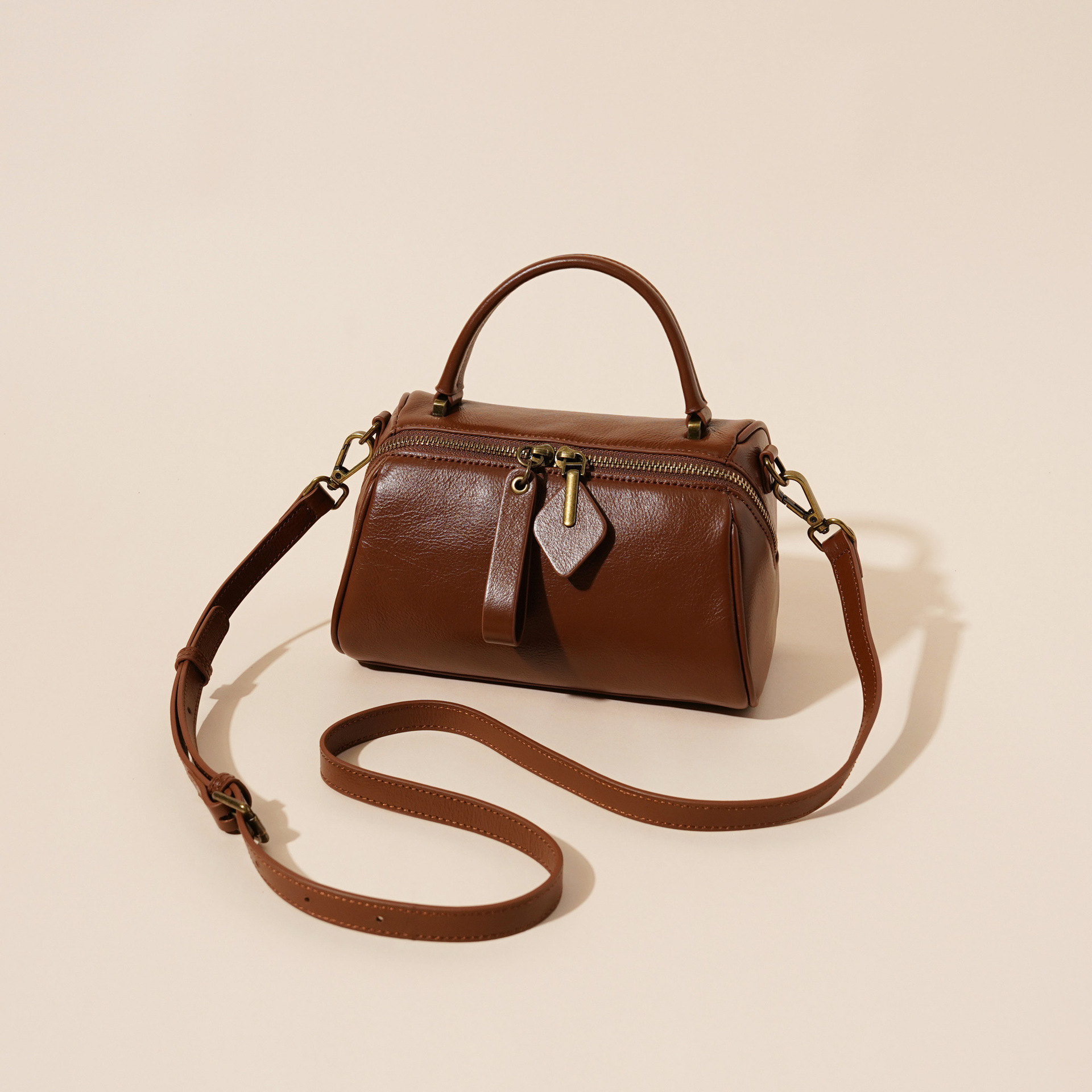 정품 가죽 가방 탑 레이어 Cowhide 새로운 2024 휴대용 보스턴 가방 대용량 올 매치 숄더 백 크로스 바디 백스토어 가기