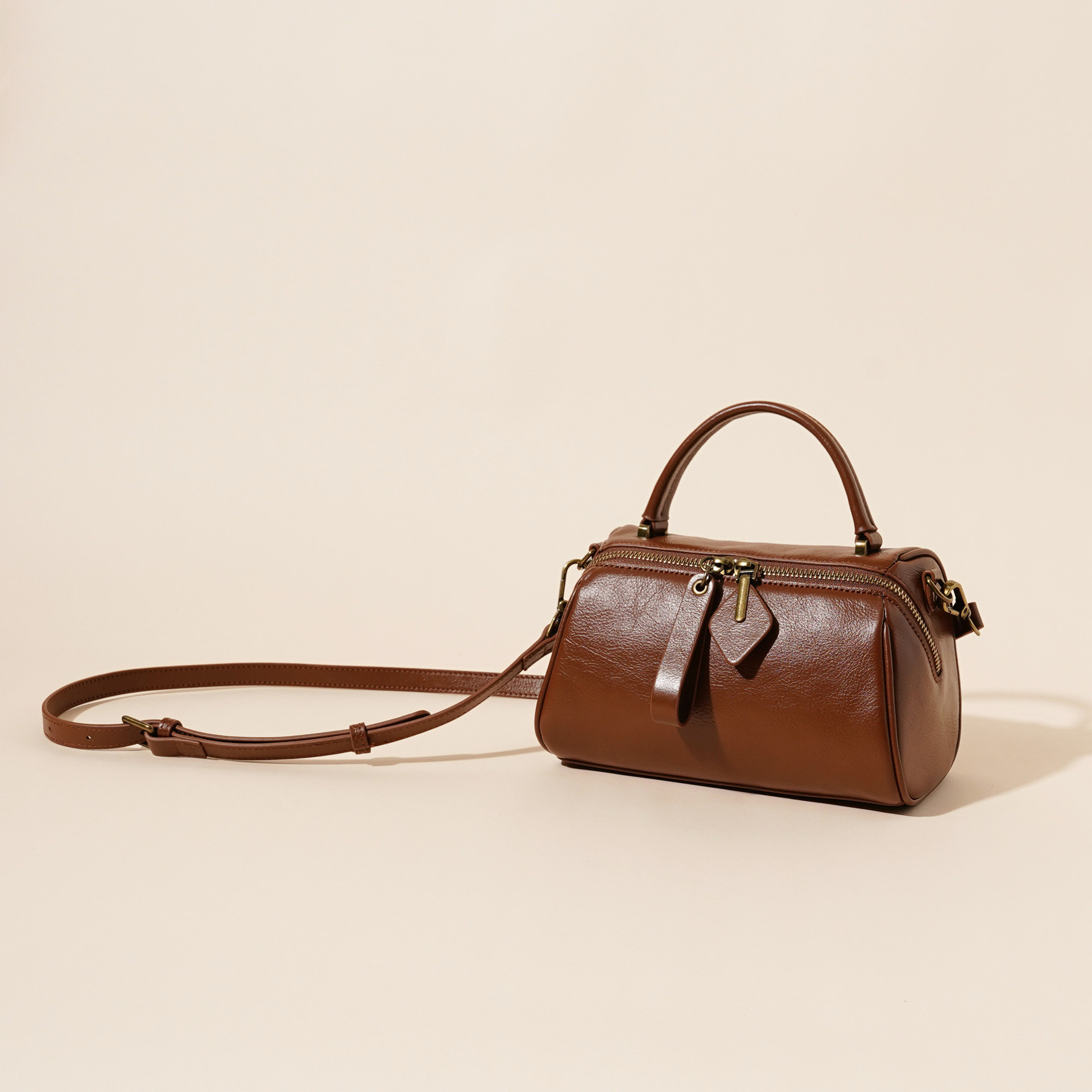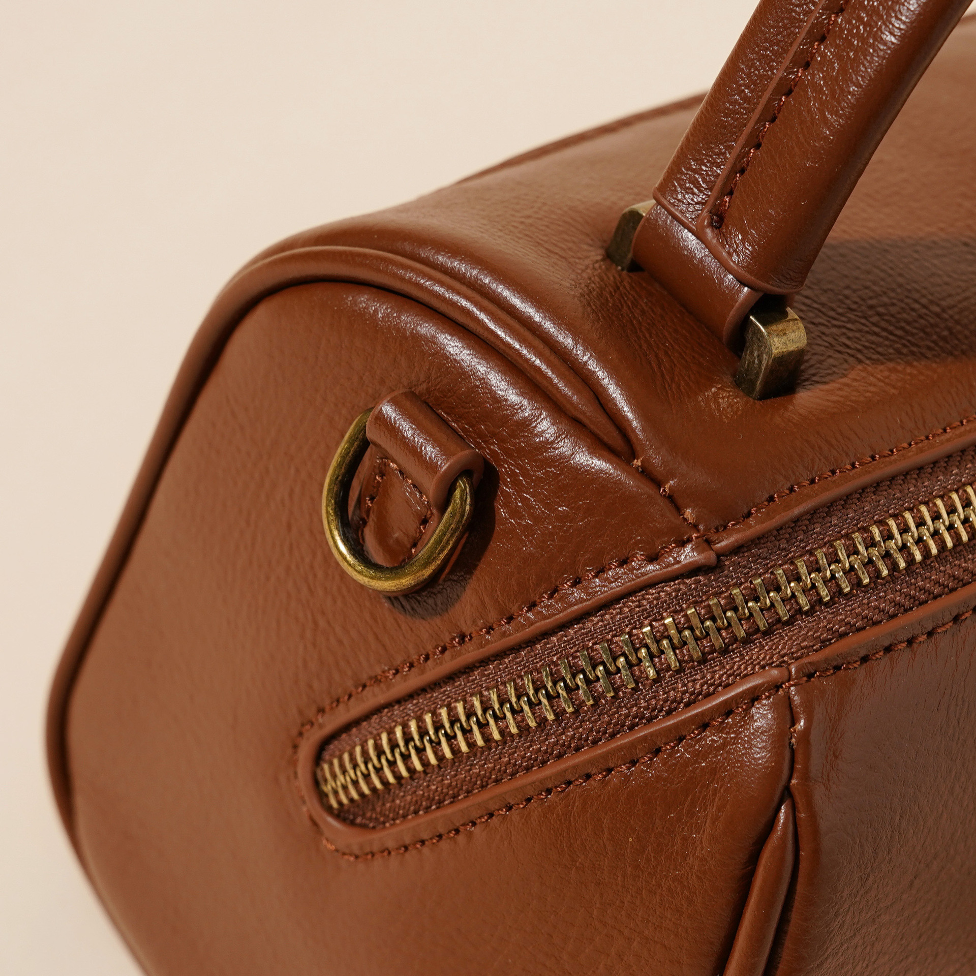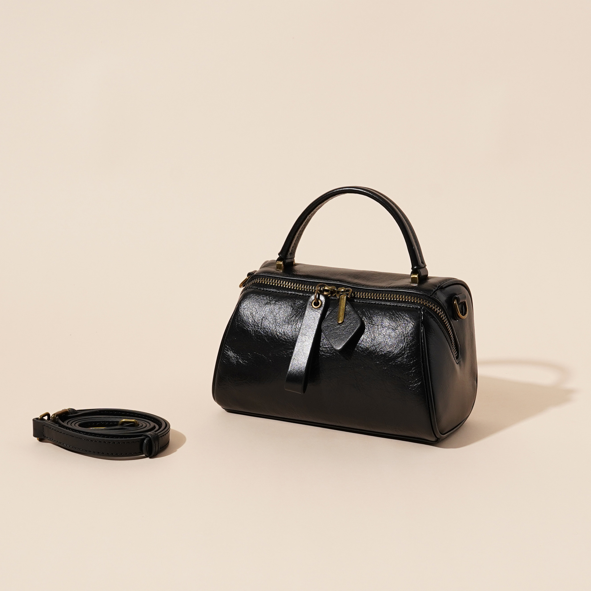 정품 가죽 가방 탑 레이어 Cowhide 새로운 2024 휴대용 보스턴 가방 대용량 올 매치 숄더 백 크로스 바디 백