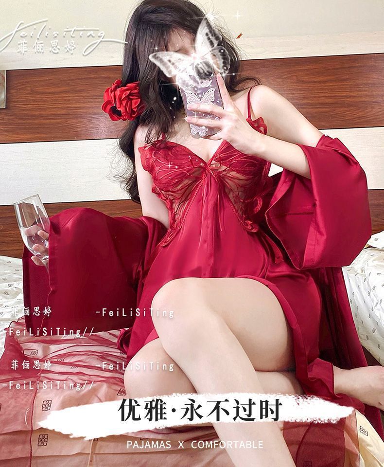 잠옷 여성의 섹시한 순수한 욕망 하이 엔드 센스 아이스 실크 여름 벨트 가슴 패드 슬링 잠옷 얇은 봄과 가을 목욕 가운 홈 옷스토어 가기