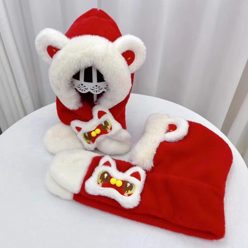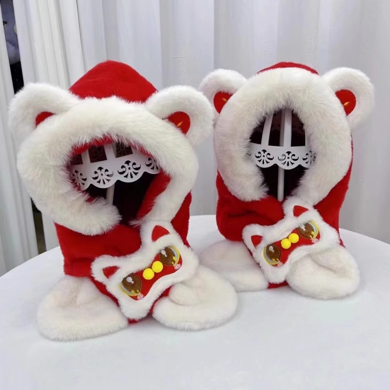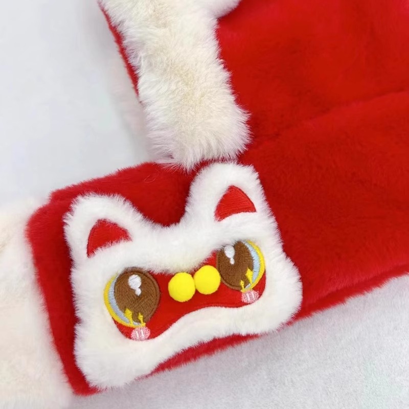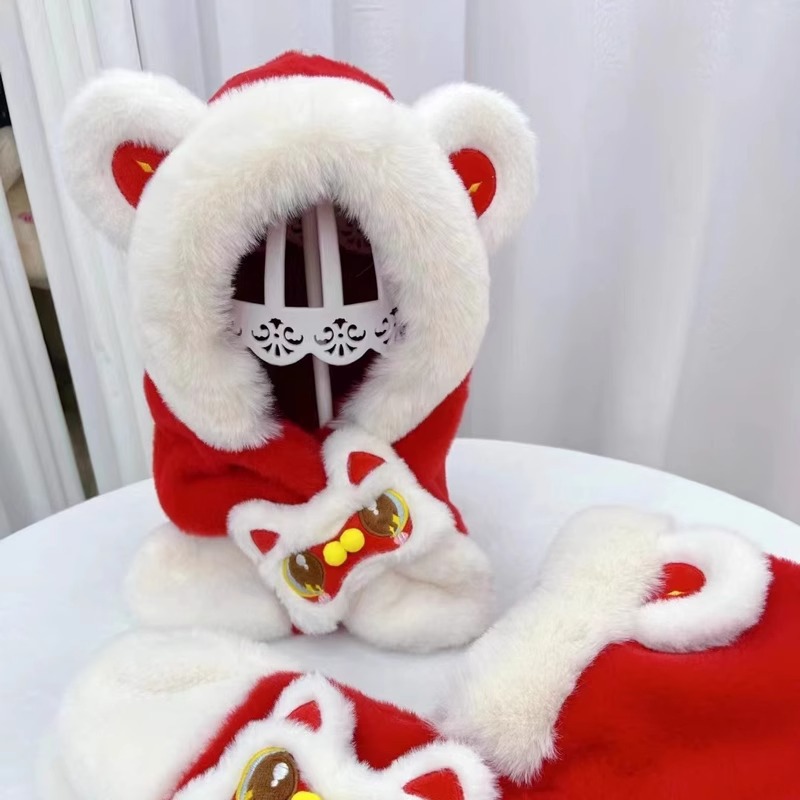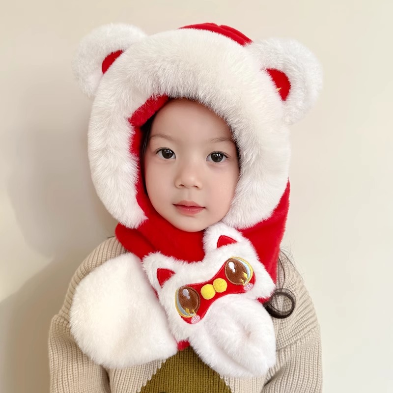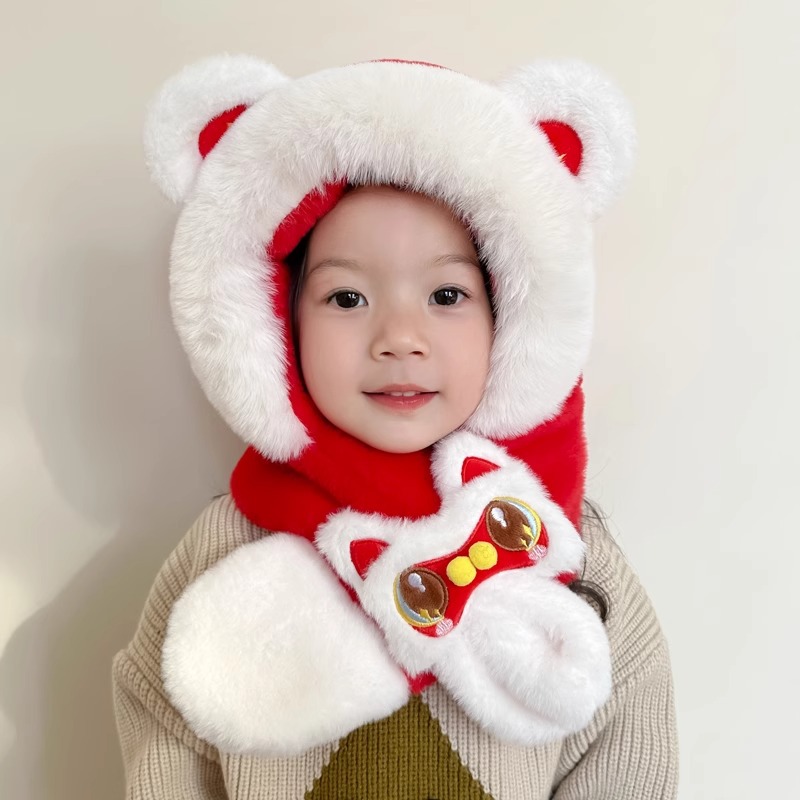가을과 겨울 아기 모자 귀여운 봉제 스카프 통합 모자 빨간 사자 춤 새해 축제 따뜻한 모자 소년 소녀스토어 가기
