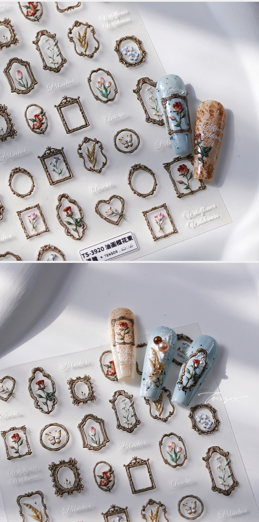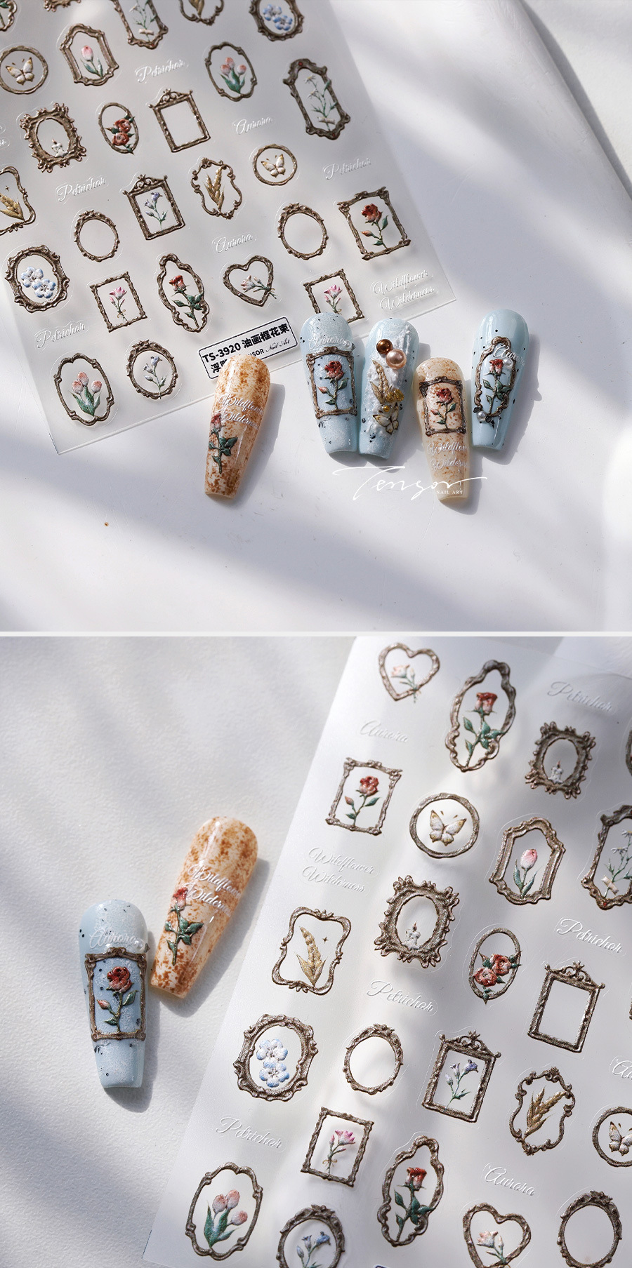 TENSOR 신기술 얇은 블레이드 귀여운 꽃 네일 아트 스티커 Ins Back Glue Armor 스티커 TS-3920 유화 프레임 꽃 꽃다발