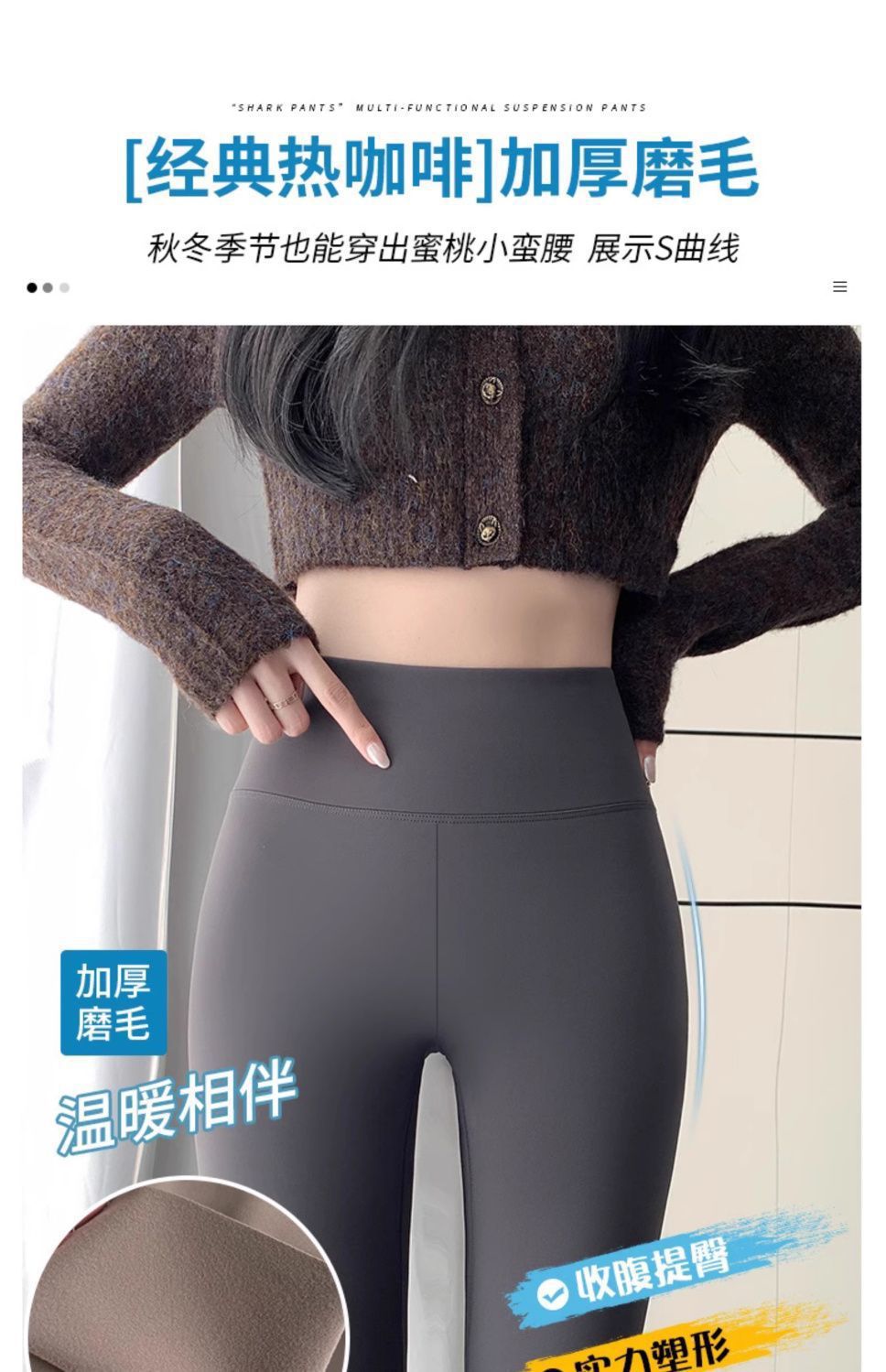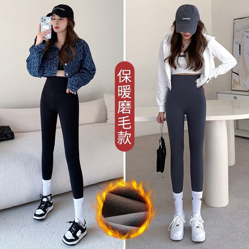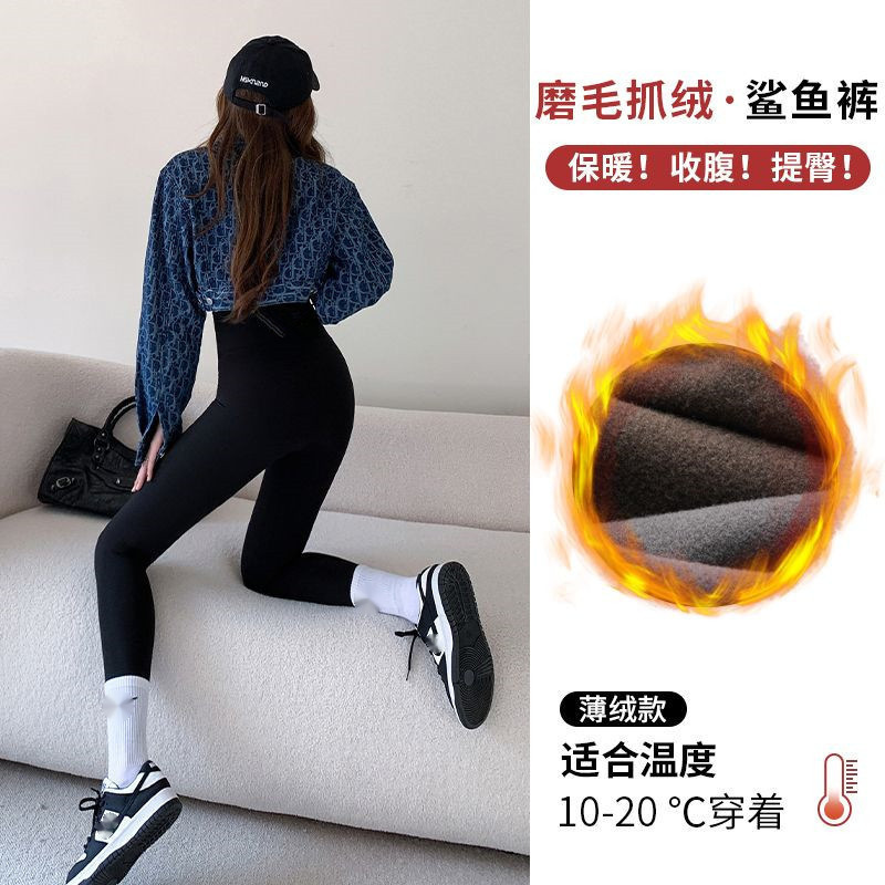샌딩 상어 바지 여성의 가을/겨울 높은 허리 복부 요가 바비 바지 기모 두꺼운 탄성 따뜻한 레깅스스토어 가기