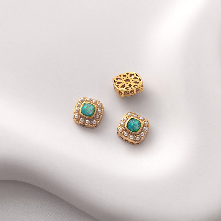 색상 보존 구리 도금 덤 골드 인레이 모방 Oper 고양이의 눈 돌 빈티지 스페이서 전송 구슬 수제 DIY 쥬얼리 액세서리