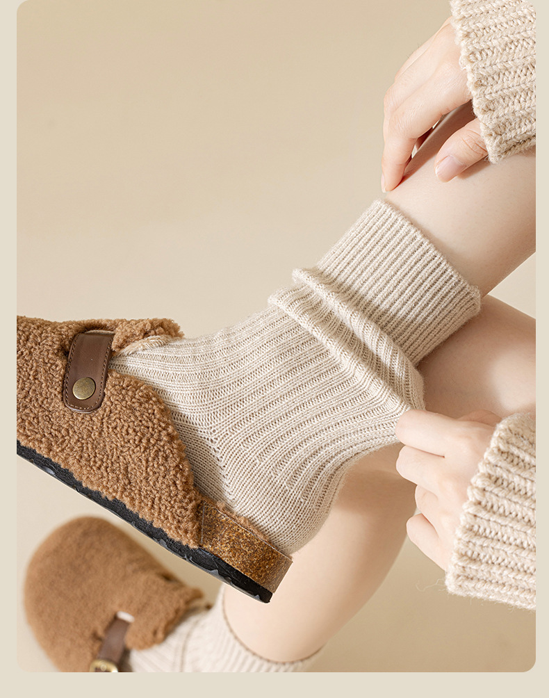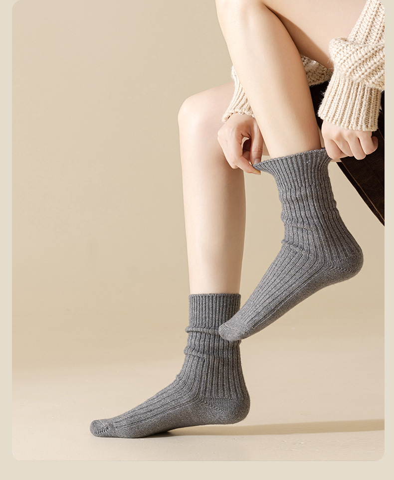가을과 겨울 두꺼운 양모 미드 튜브 스택 양말 여성 기모 두꺼운 따뜻한 스택 양말 솔리드 컬러 일본식 서랍 양말
