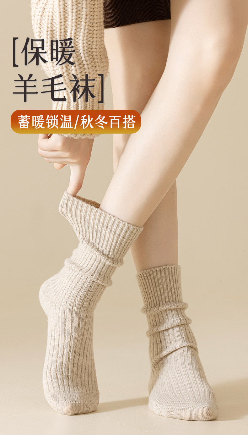 가을과 겨울 두꺼운 양모 미드 튜브 스택 양말 여성 기모 두꺼운 따뜻한 스택 양말 솔리드 컬러 일본식 서랍 양말스토어 가기