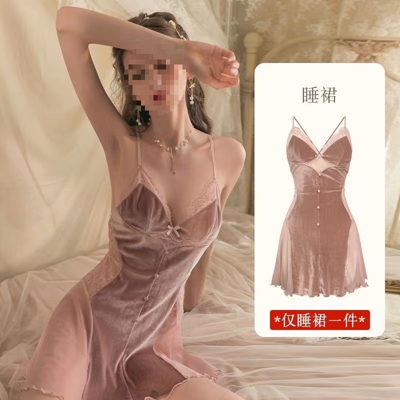 가벼운 럭셔리 잠옷 여성 가을과 겨울 새로운 섹시한 레이스 파자마 백리스 스트랩 나이트 가운 가슴 패드스토어 가기