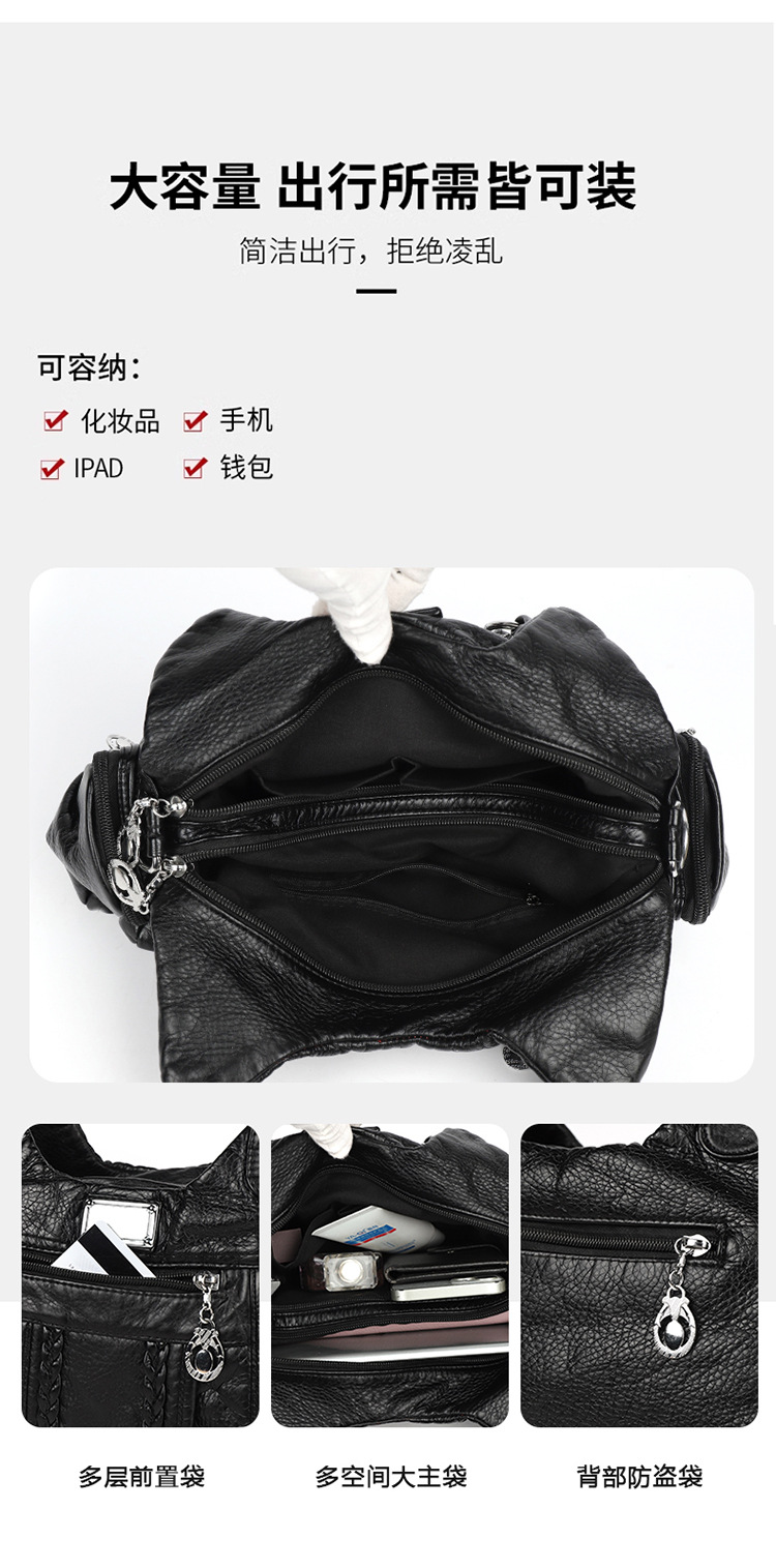 국경 새 어깨 가방 대용량 중년 소프트 가죽 어머니 가방 캐주얼 유행 가방 핸드백 다층 지퍼
