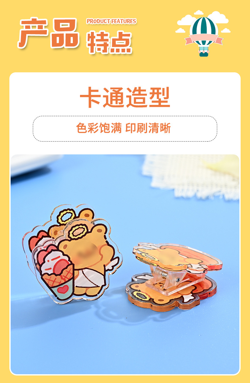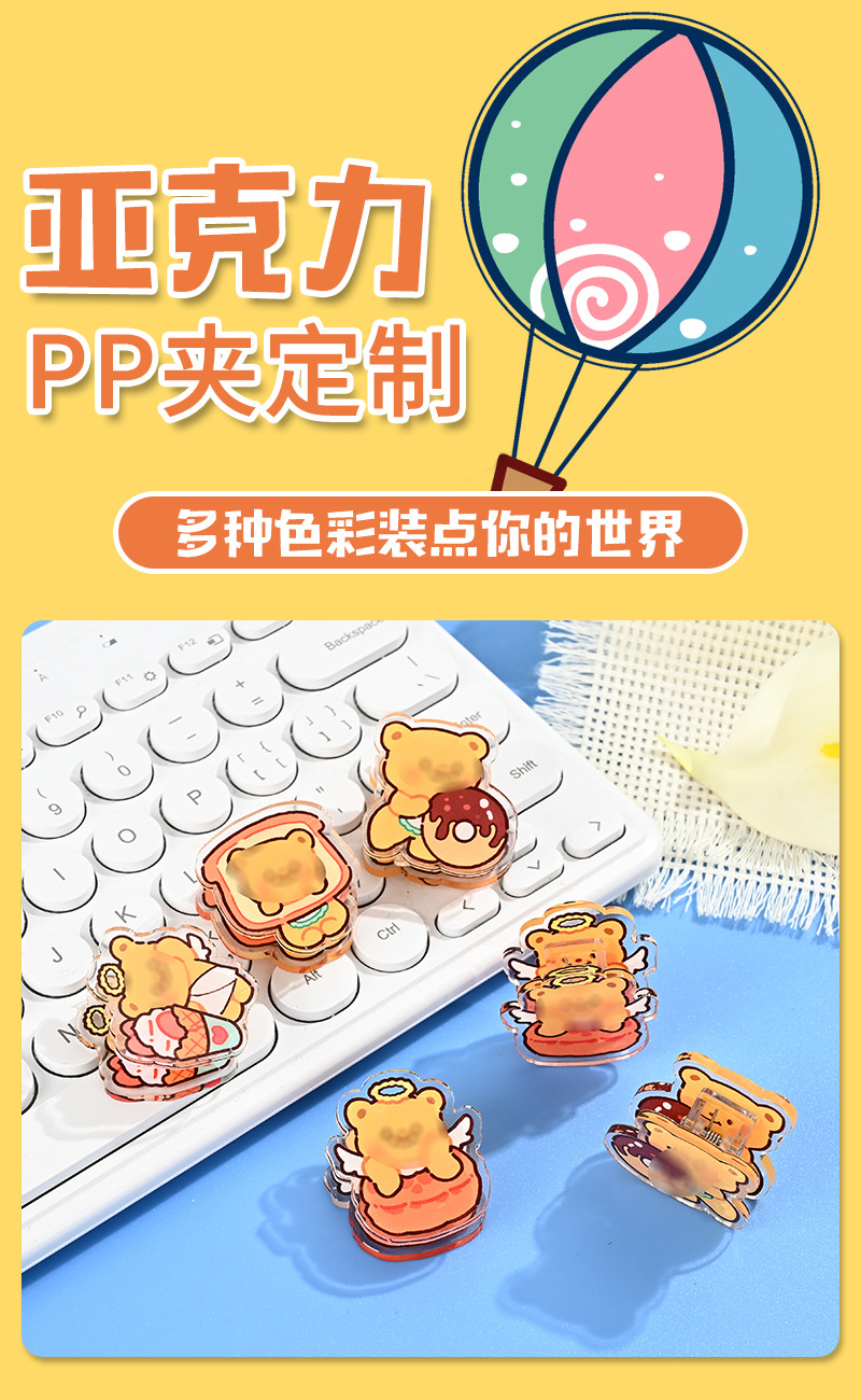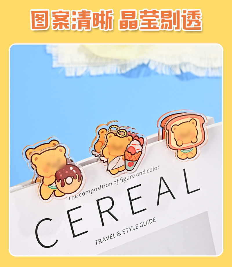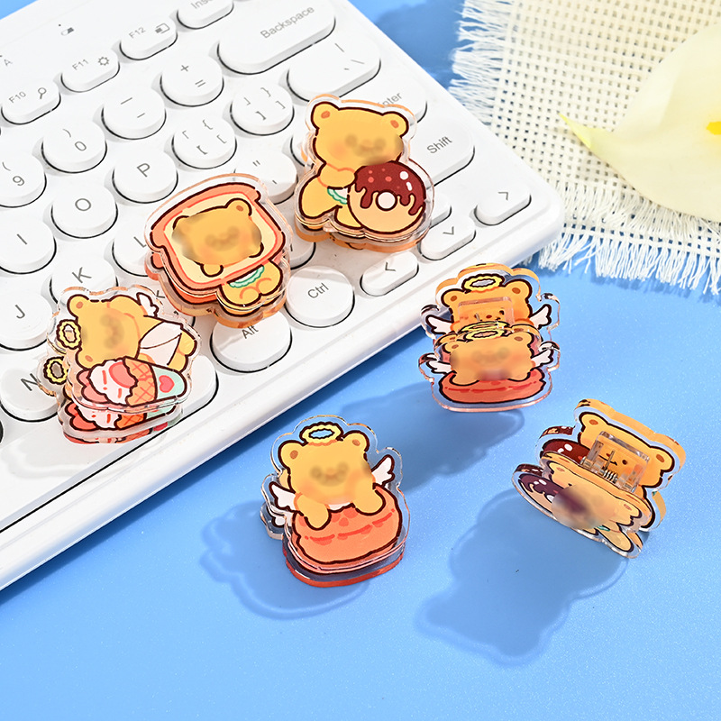 아크릴 만화 곰돌이 PP 클립 맞춤 제작 스타 애니메이션 양면 수첩 클립 학습 사무용 메모 클립 창의적인 클립