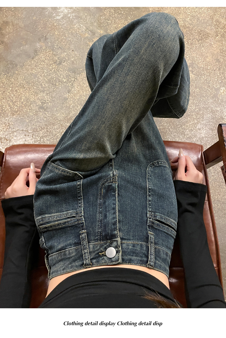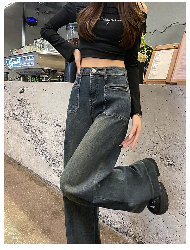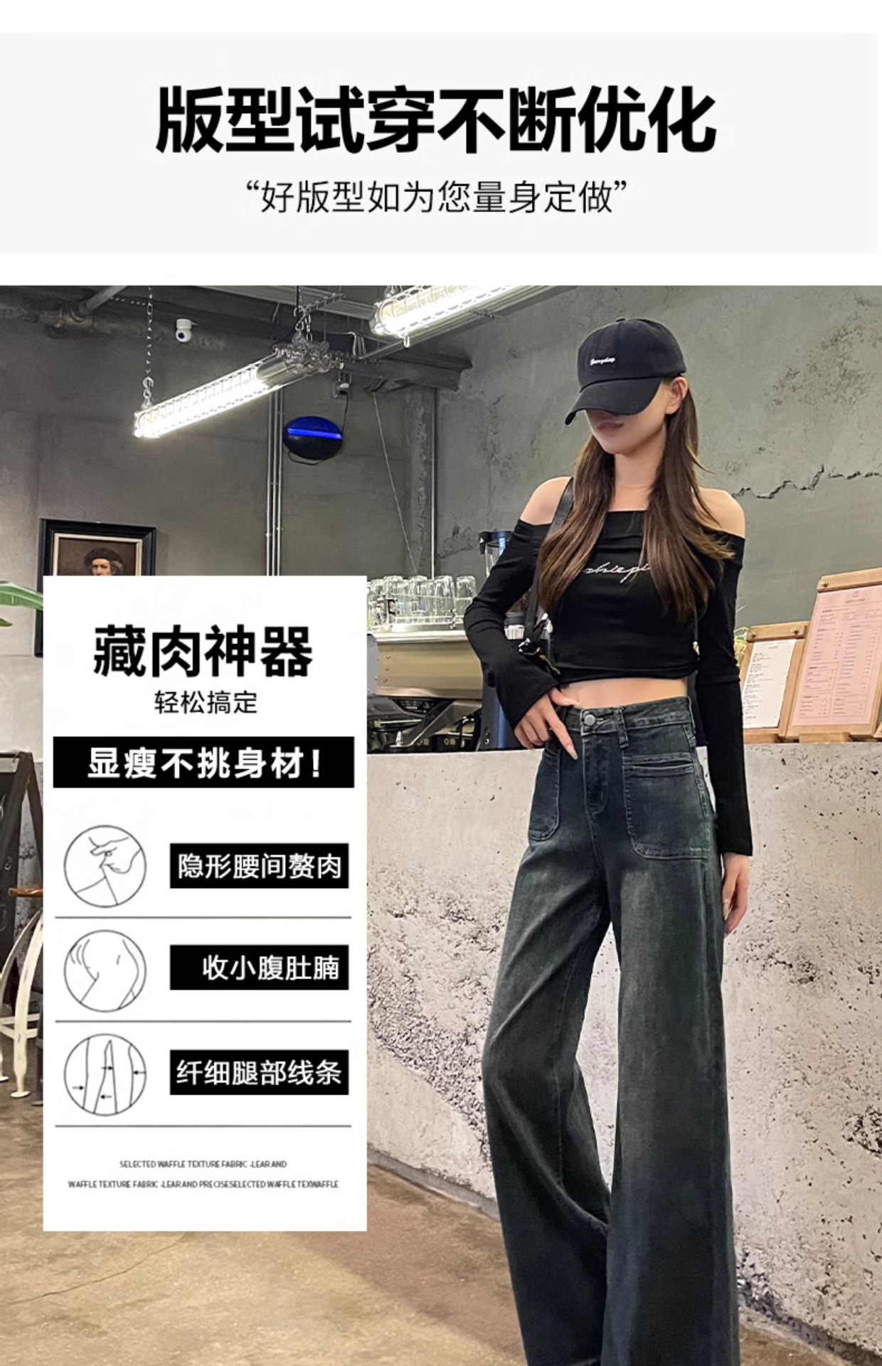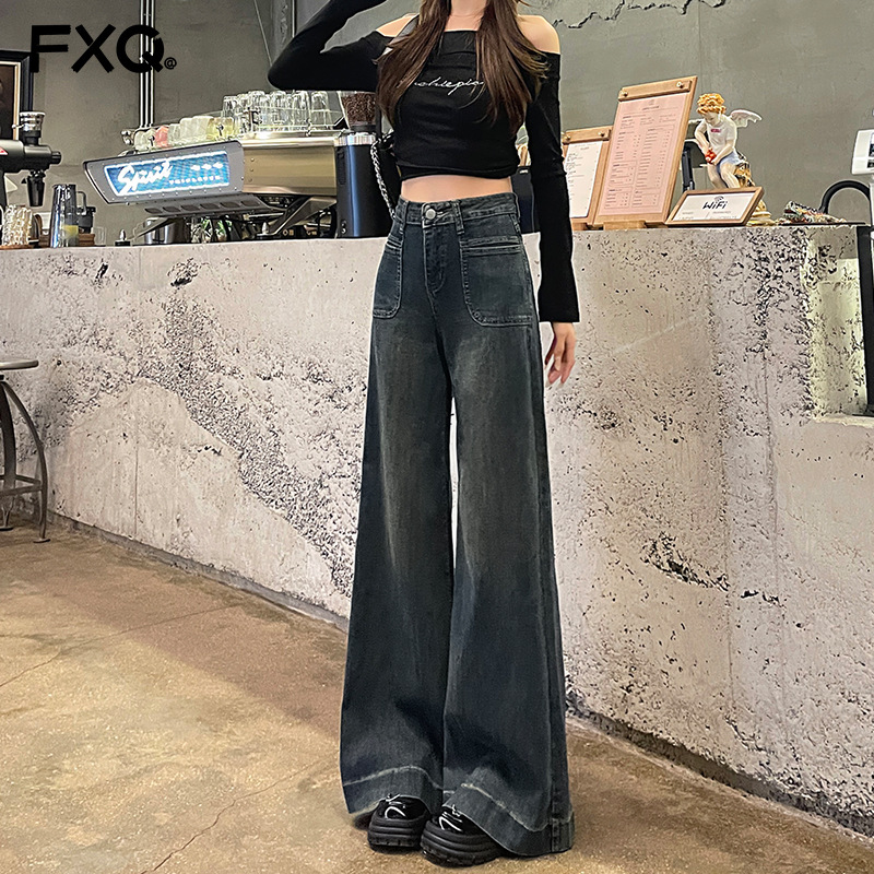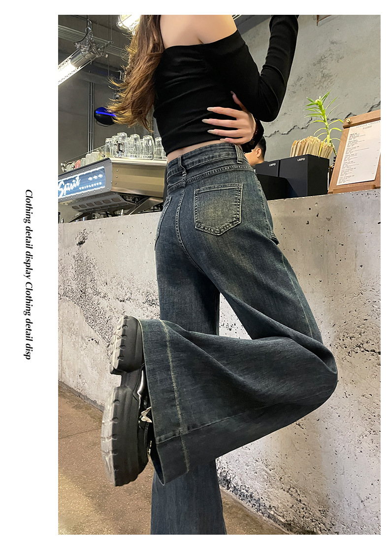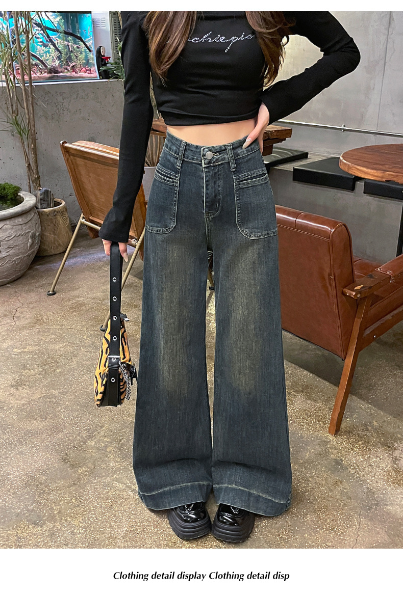 향수 블루 높은 허리 넓은 다리 청바지 여성의 가을과 겨울 2024 새로운 느슨한 겨울 뿔 걸레 바지스토어 가기