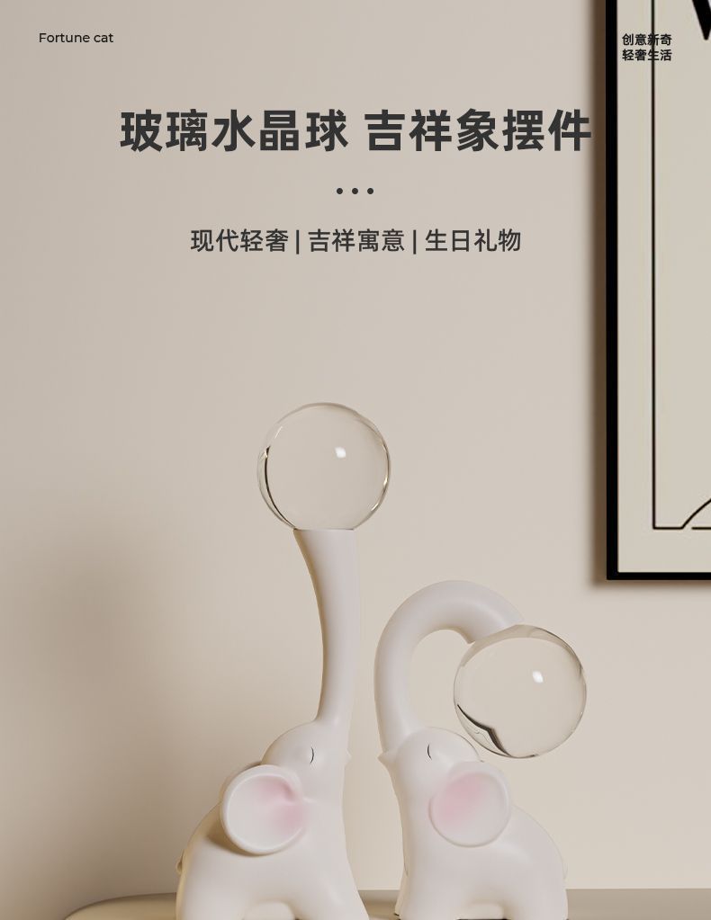 코끼리 장식품 행운의 코끼리 크리스탈 볼 TV 와인 캐비닛 현관 거실 장식 가벼운 고급 고급 집들이 크리스마스 선물