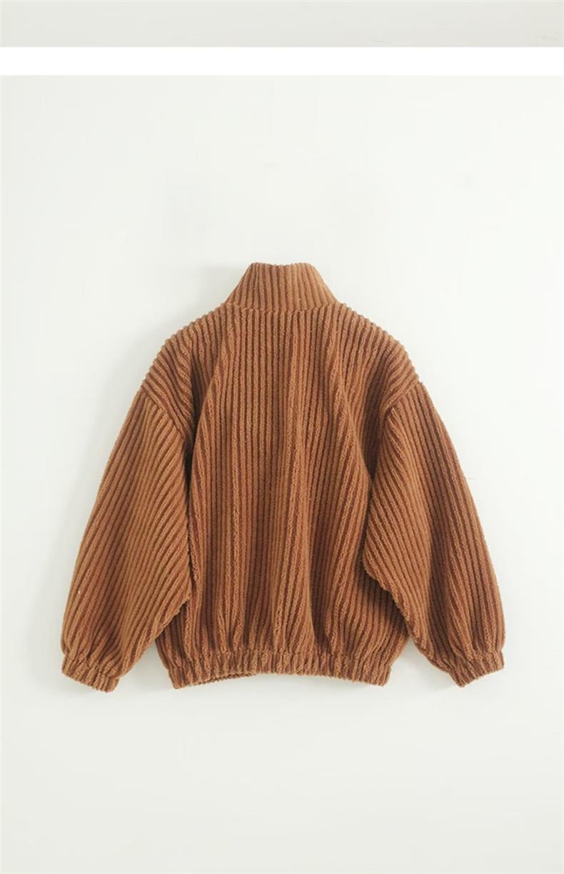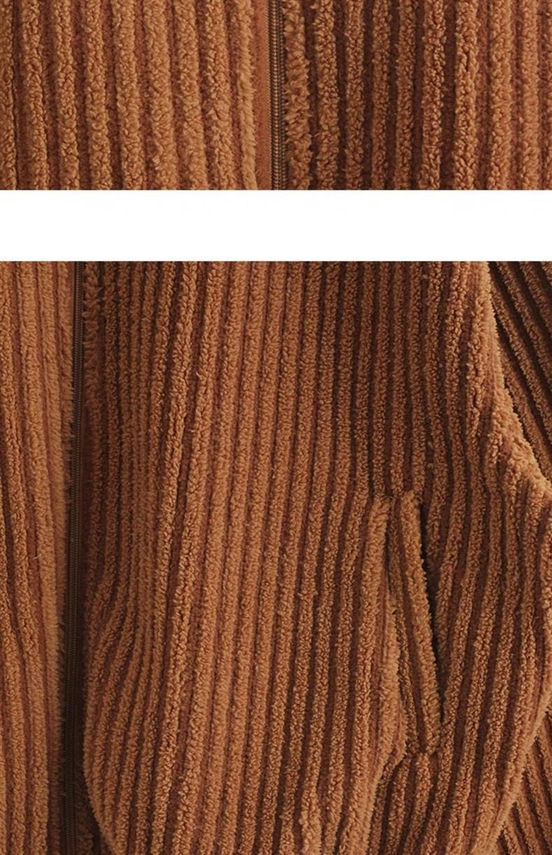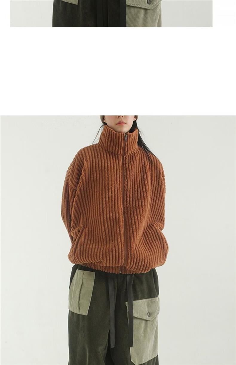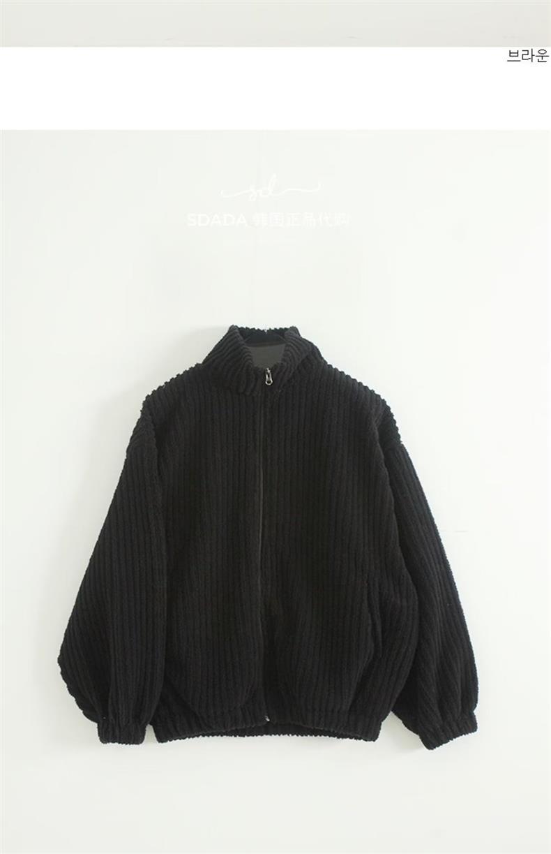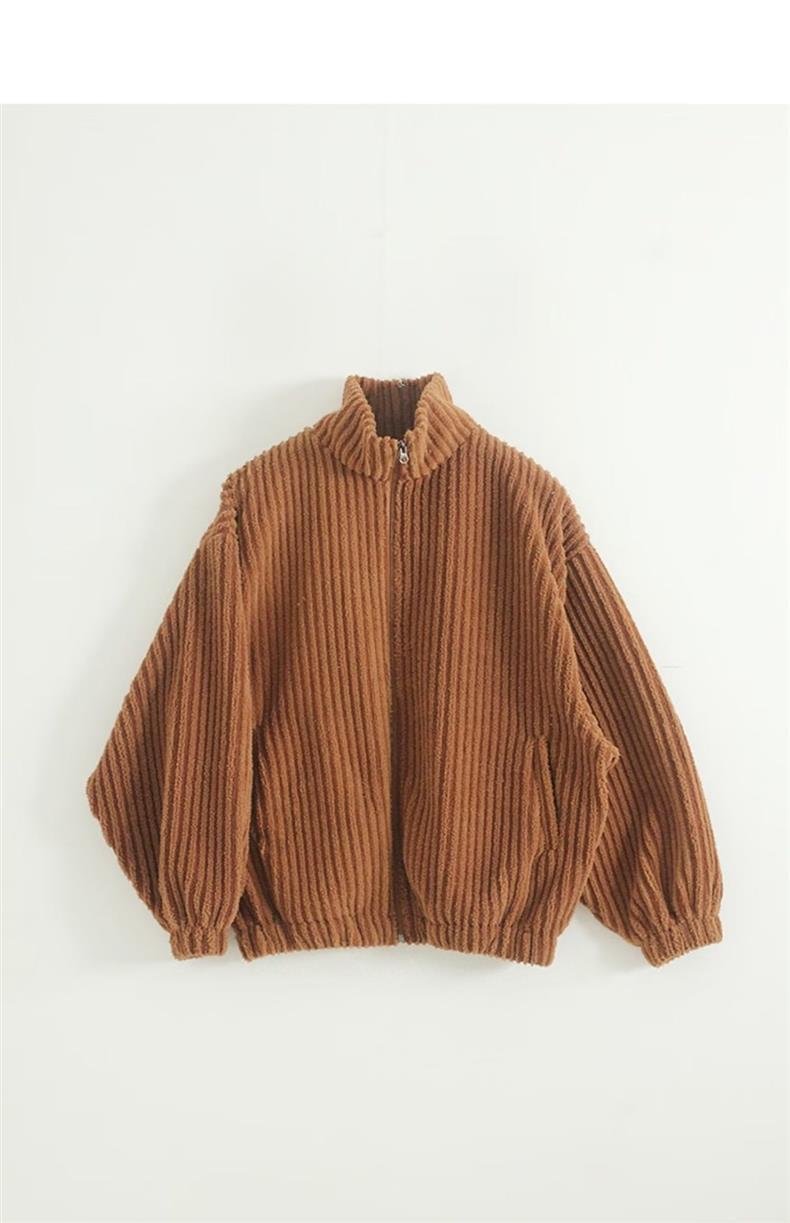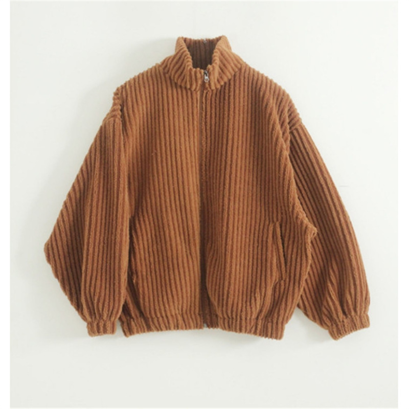 따뜻한 최고 유행 브랜드 한국 스타일 유행 수직 칼라 재킷 다크 브라운 코듀로이 재킷 여성의 가을과 겨울 느슨한 디자인 감각