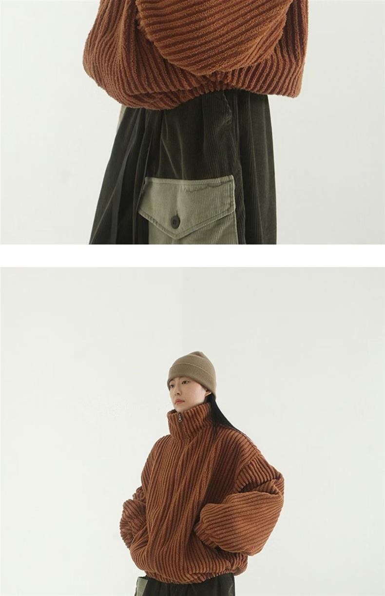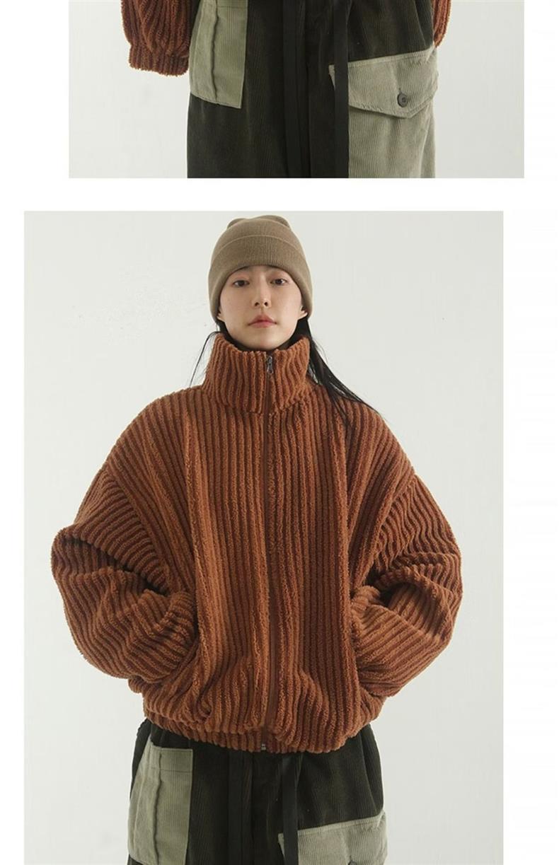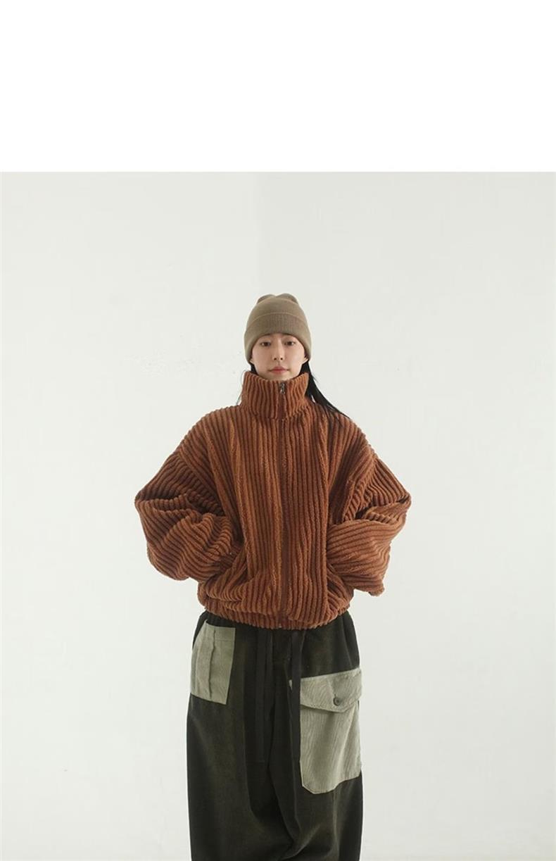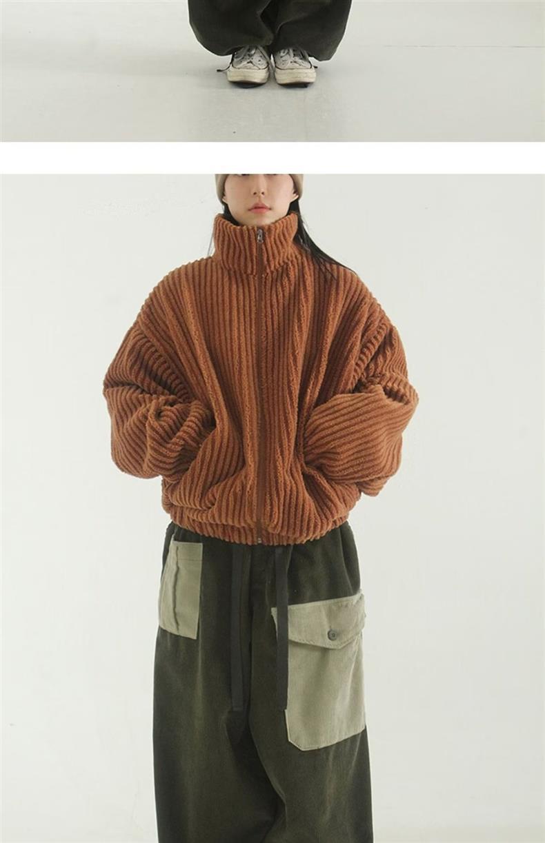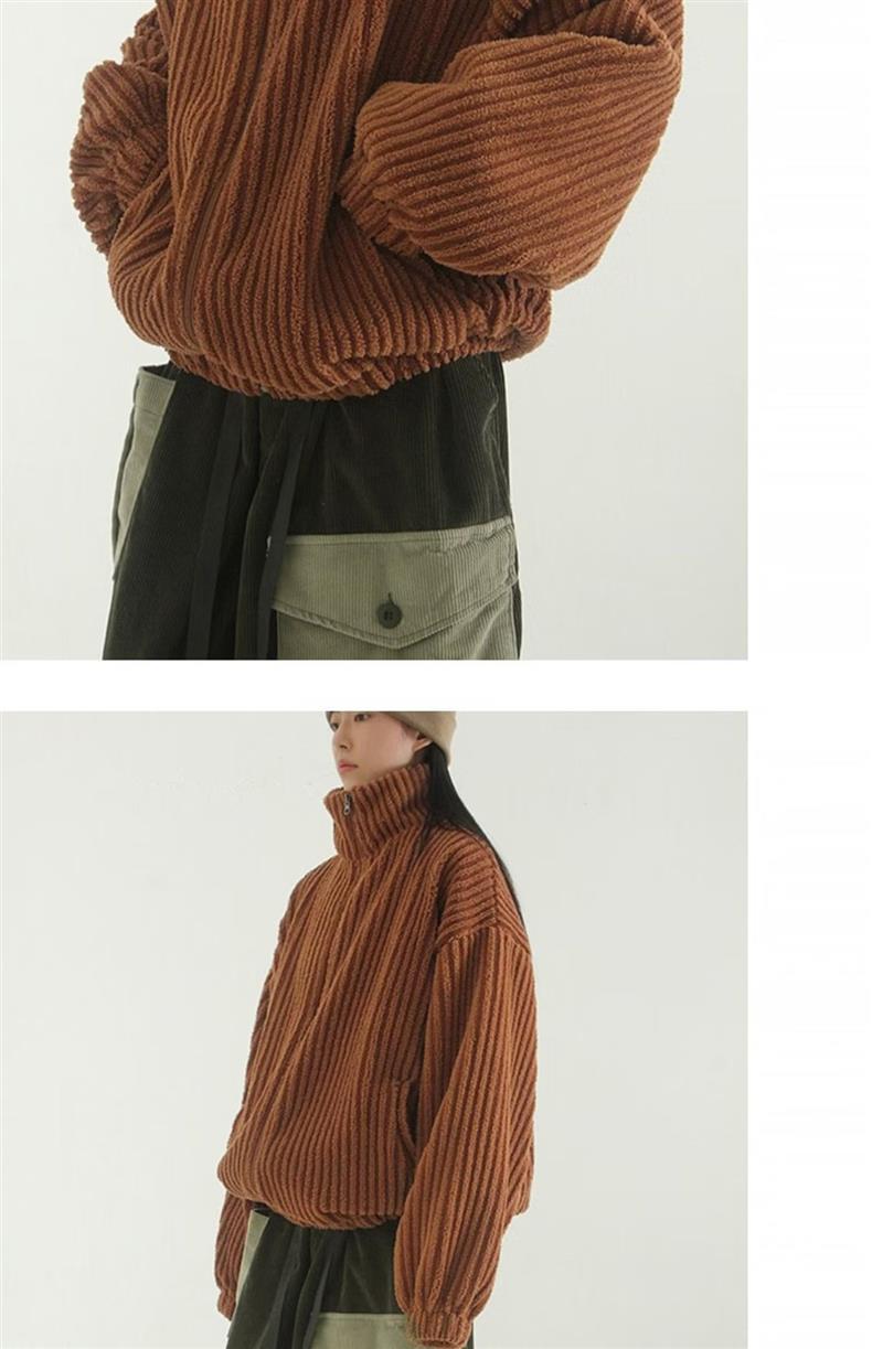 따뜻한 최고 유행 브랜드 한국 스타일 유행 수직 칼라 재킷 다크 브라운 코듀로이 재킷 여성의 가을과 겨울 느슨한 디자인 감각