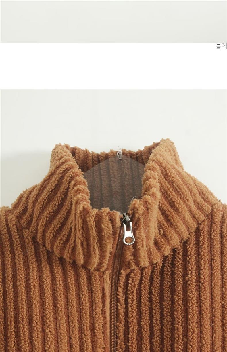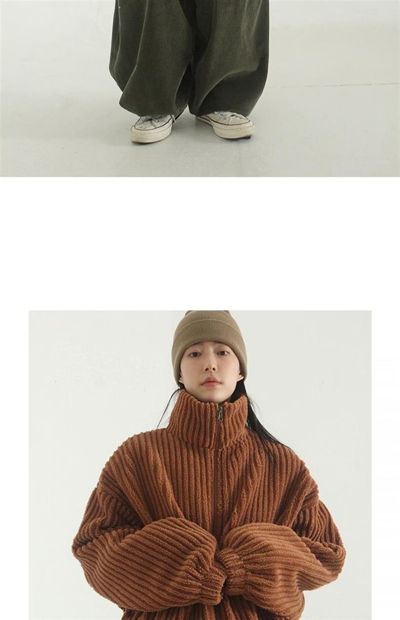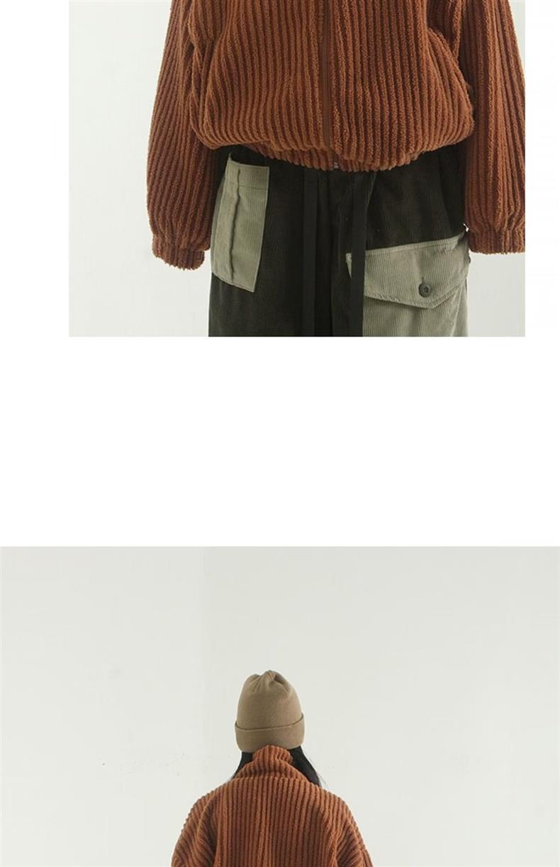 따뜻한 최고 유행 브랜드 한국 스타일 유행 수직 칼라 재킷 다크 브라운 코듀로이 재킷 여성의 가을과 겨울 느슨한 디자인 감각스토어 가기
