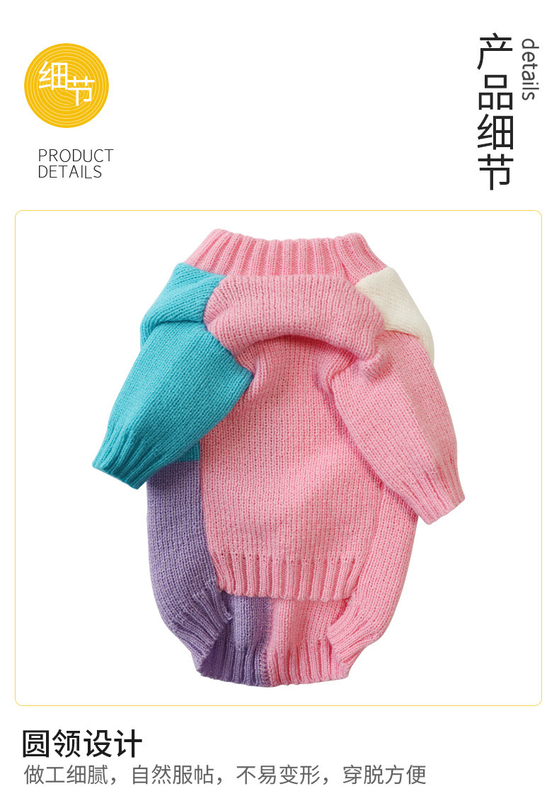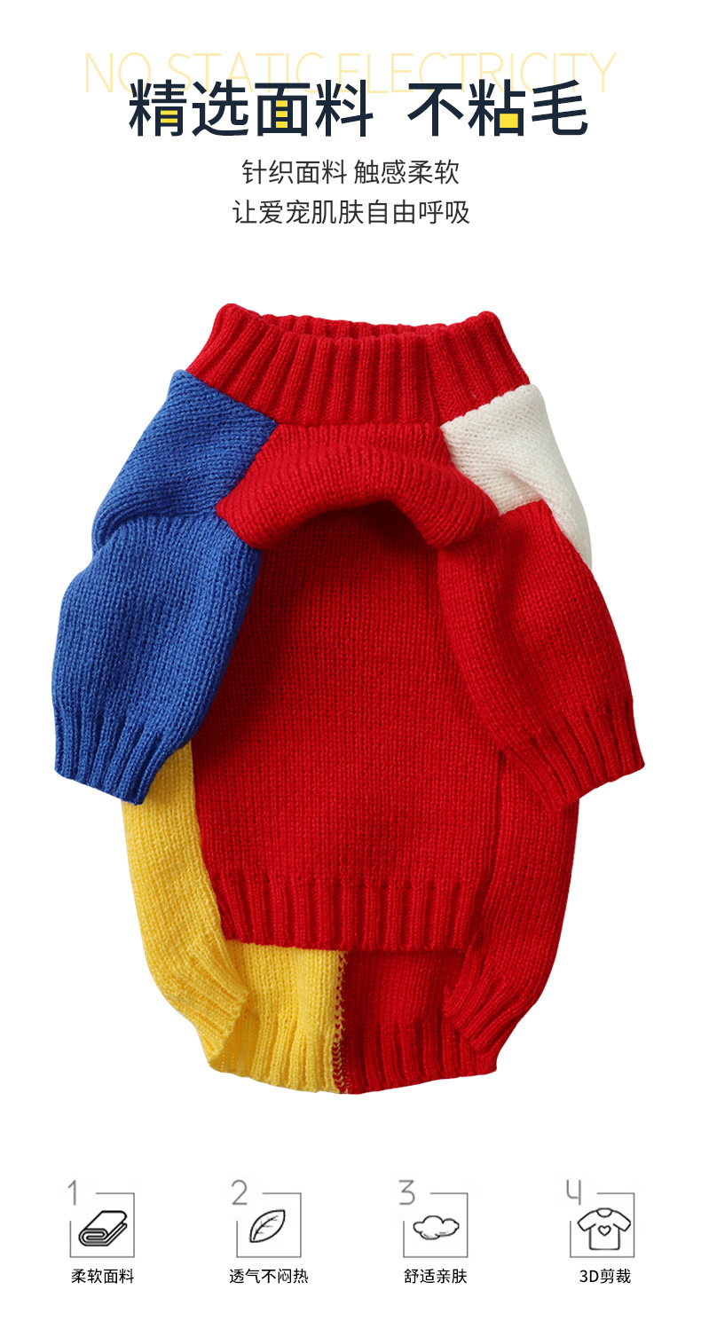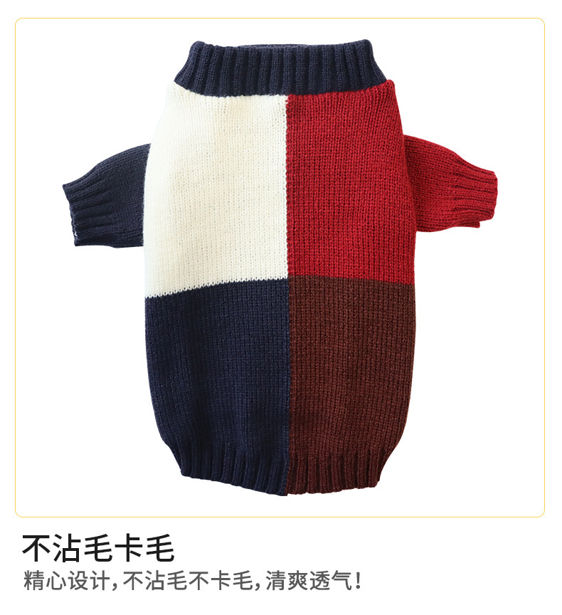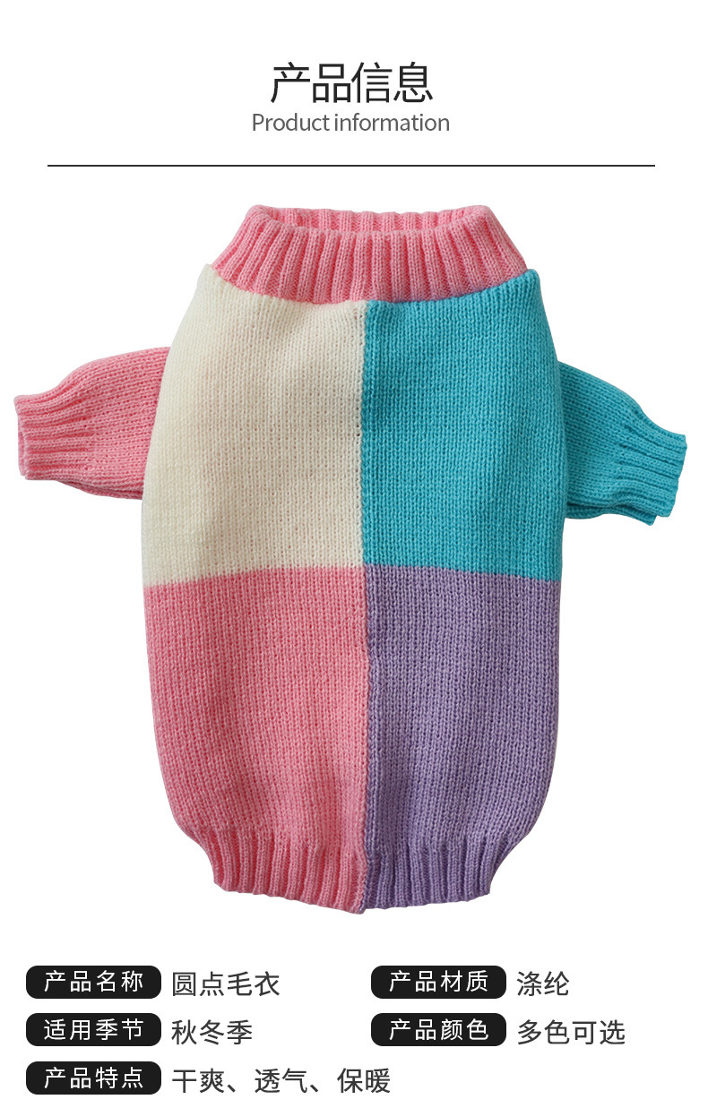 2024 가을과 겨울 새로운 울 니트 컬러 매칭 개 스웨터 캐주얼 따뜻한 풀오버 귀여운 애완 동물 의류스토어 가기