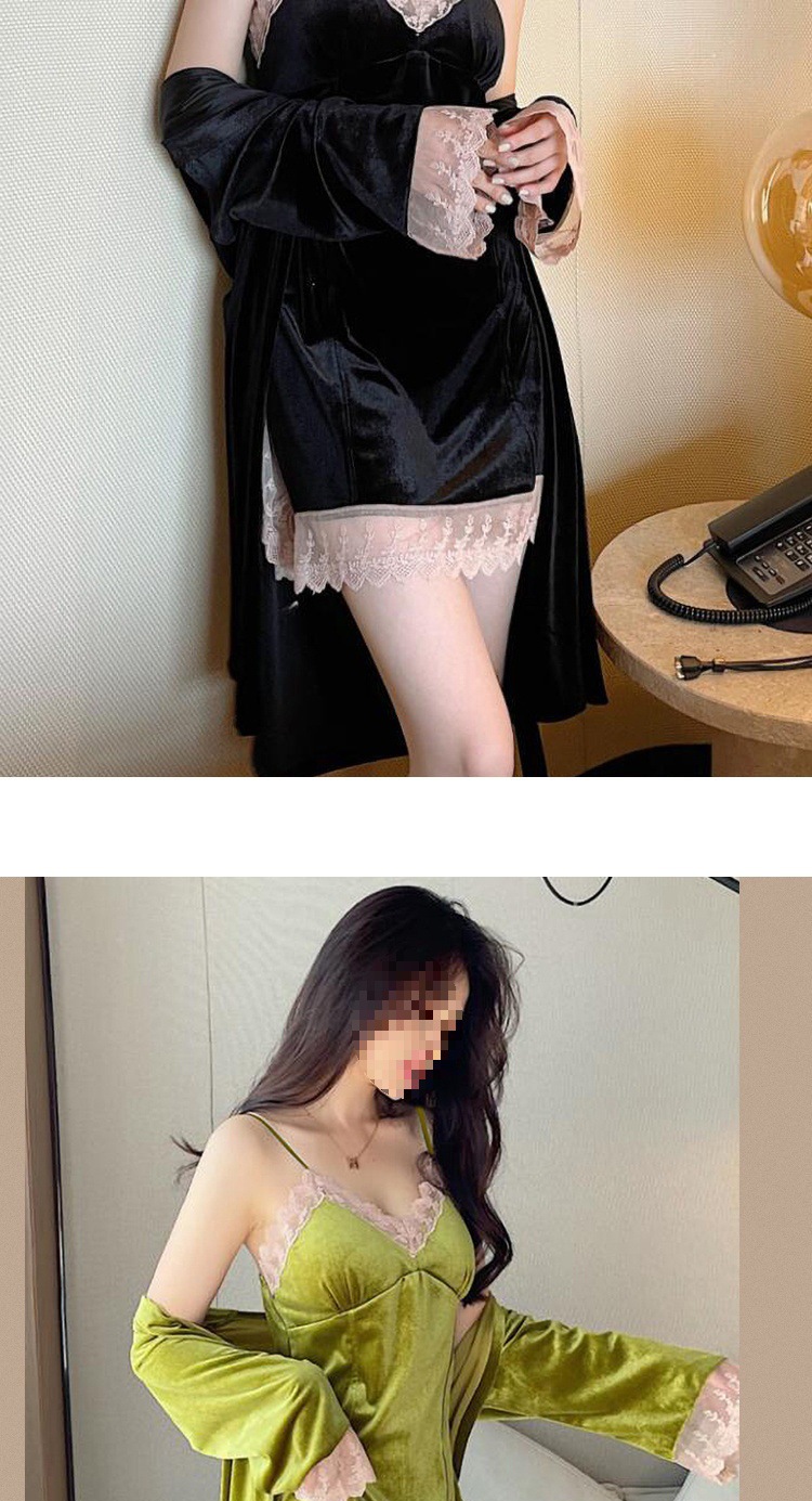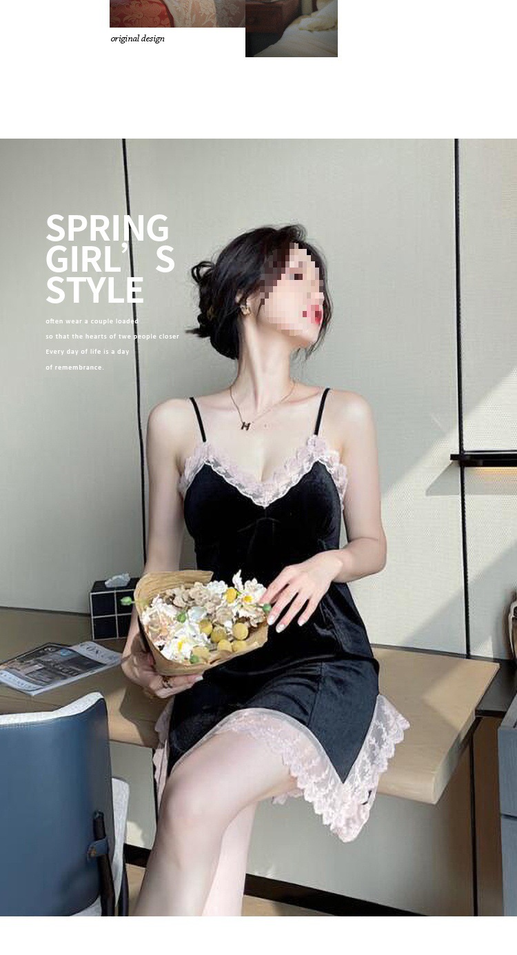 프랑스 스타일 섹시한 잠옷 여성의 새로운 순수한 욕망 스타일 황금 벨벳 잠옷 세트 사이버 축하 레이스 개인 주택 유혹 홈 의류스토어 가기