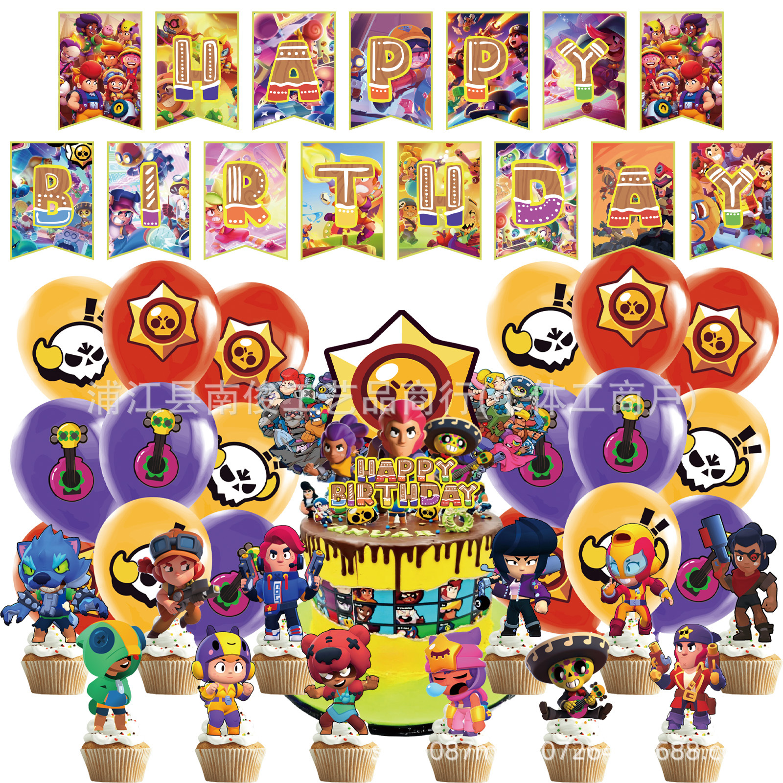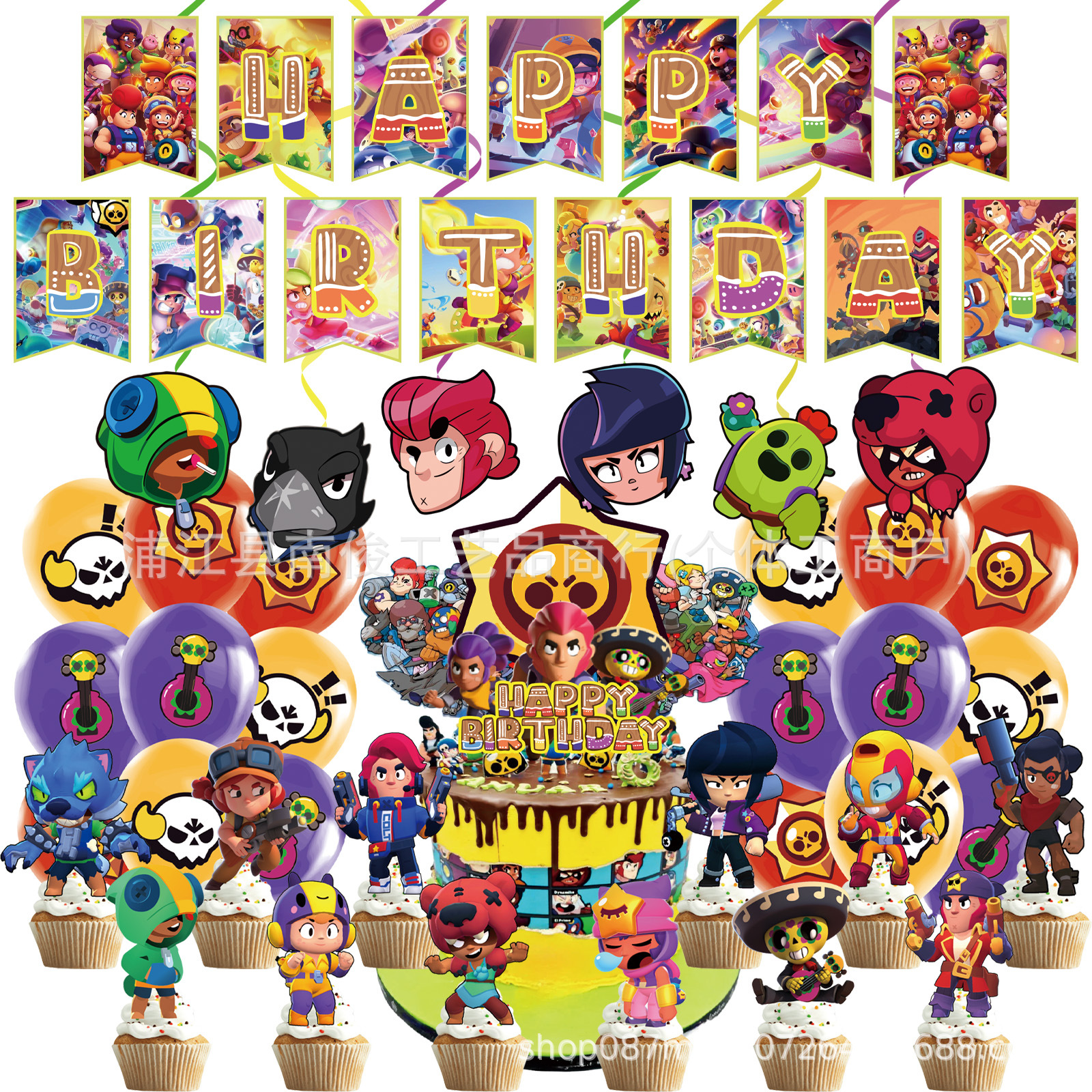 새로운 광야 전투 게임 만화 테마 파티 장식 생일 깃발 케이크 삽입 나선 풍선 세트스토어 가기