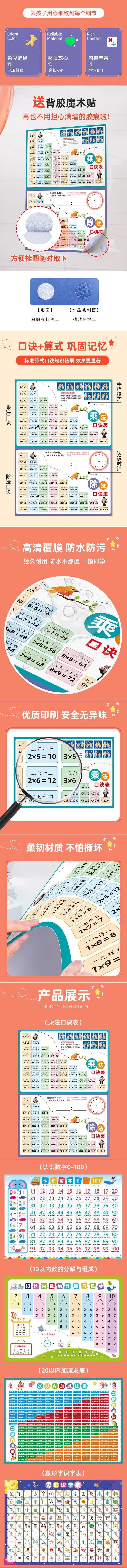 어린이 9-9 개의 곱셈 테이블 벽 차트 큰 벽 스티커 매일 99 개의 곱셈 및 분할 방법 연습
