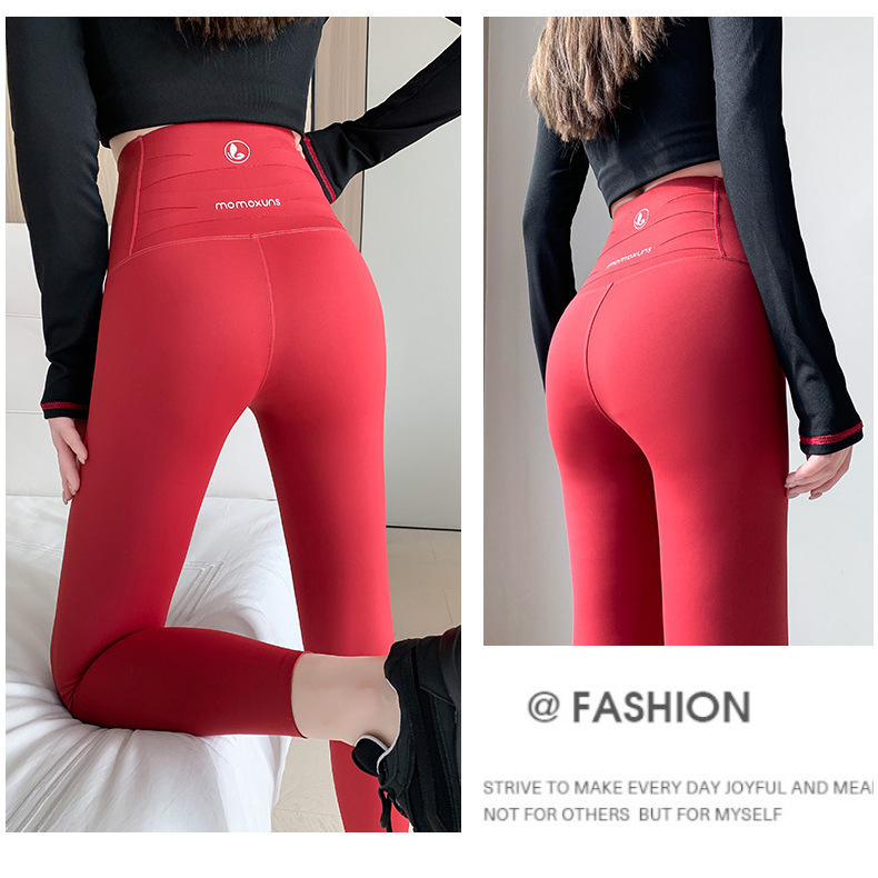 높은 허리 엉덩이 리프트 바비 요가 피트니스 상어 바지 여성용 봄 여름 가을 기모 컬링없이 빈티지 버건디 타이트 허리