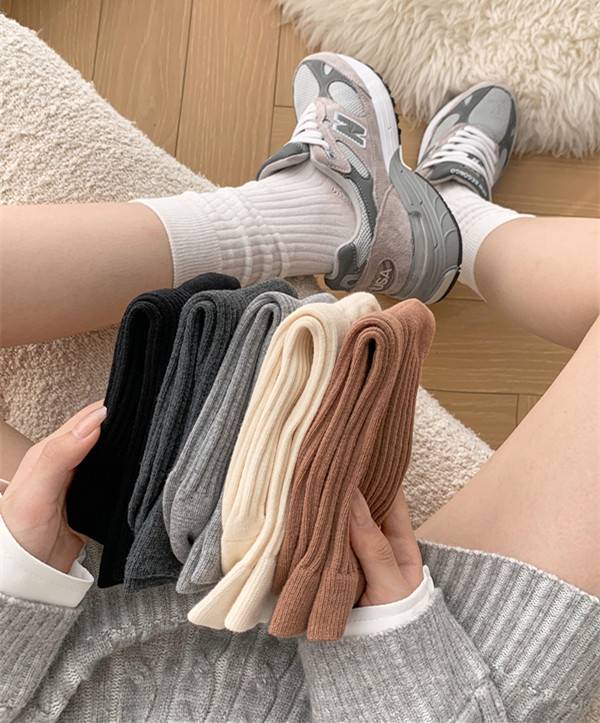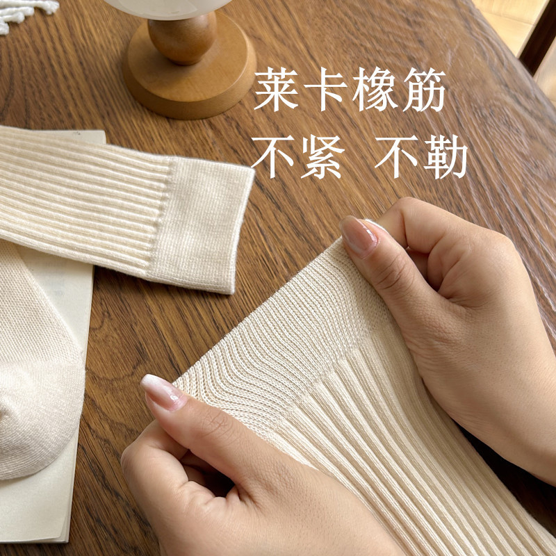 양말 여성의 가을과 겨울 순면 쌓인 양말 줄무늬 트렌디 한 화이트 스트라이프 미드 사이즈 양말, 통기성 안티 필링 흡수스토어 가기