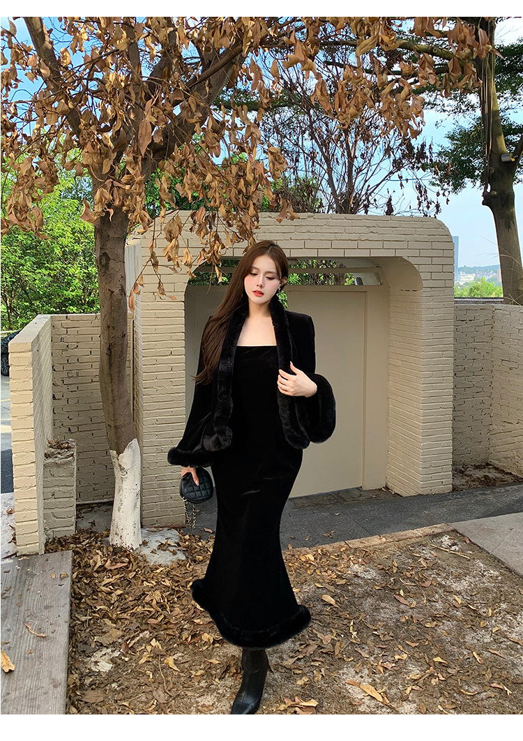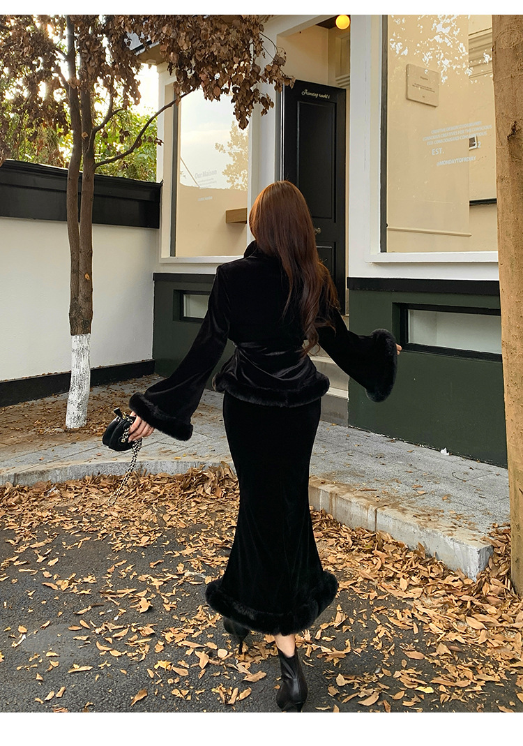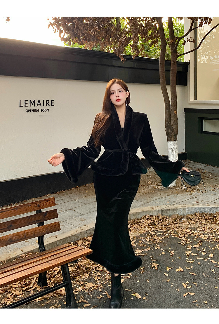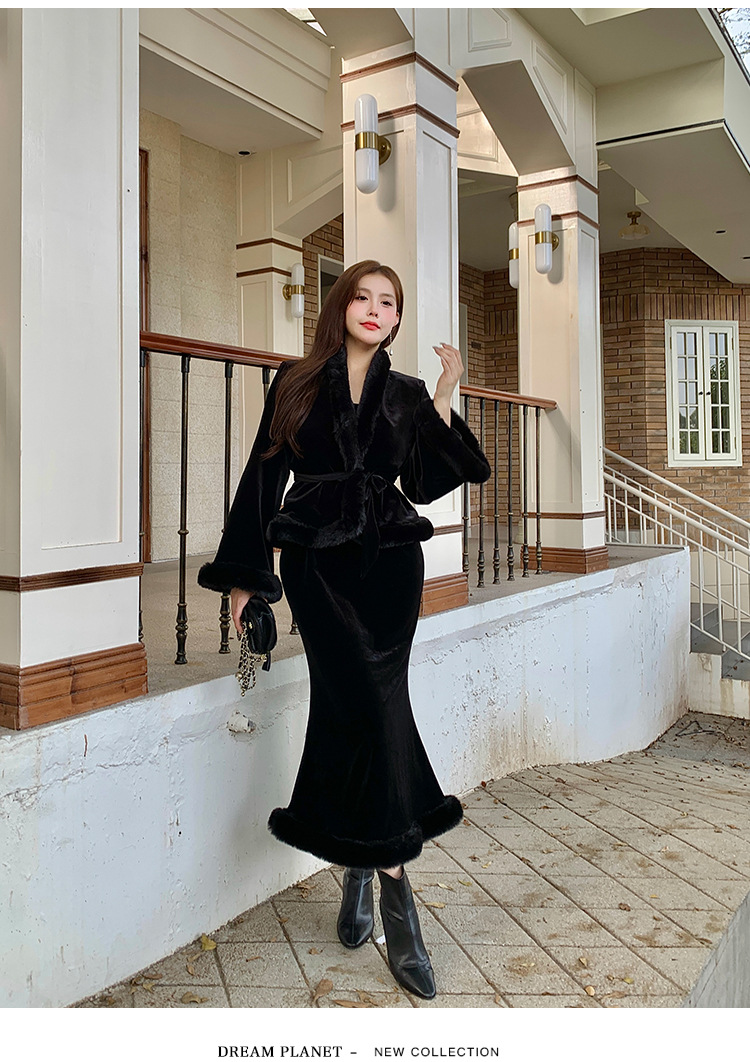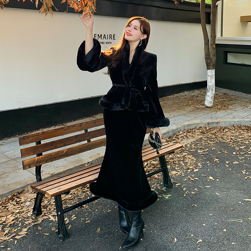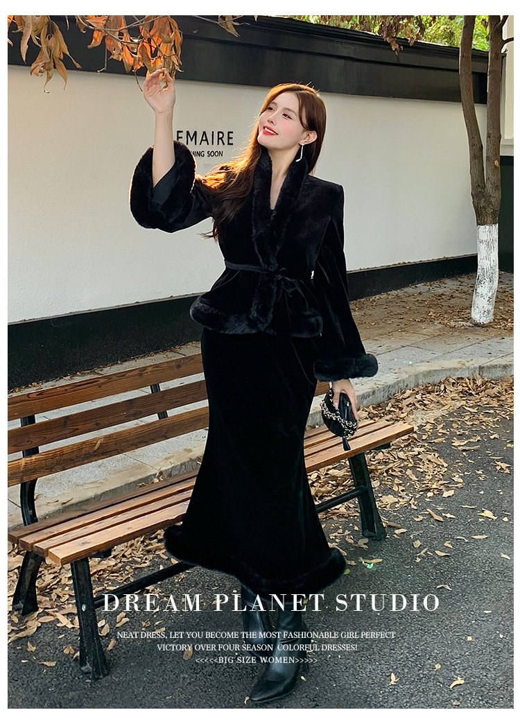 플러스 사이즈 여자 하이 엔드 프랑스 레트로 새해 가운 벨벳 세트 우아한 피쉬 테일 투피스 1991스토어 가기