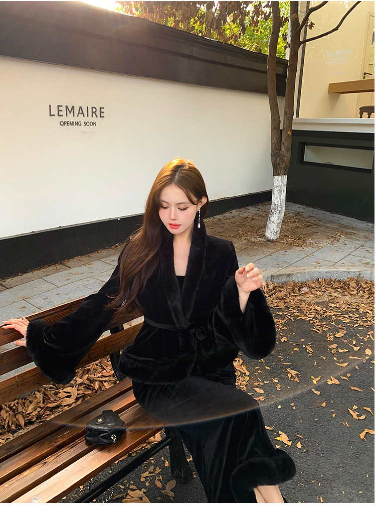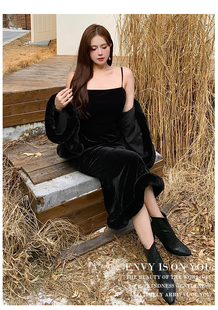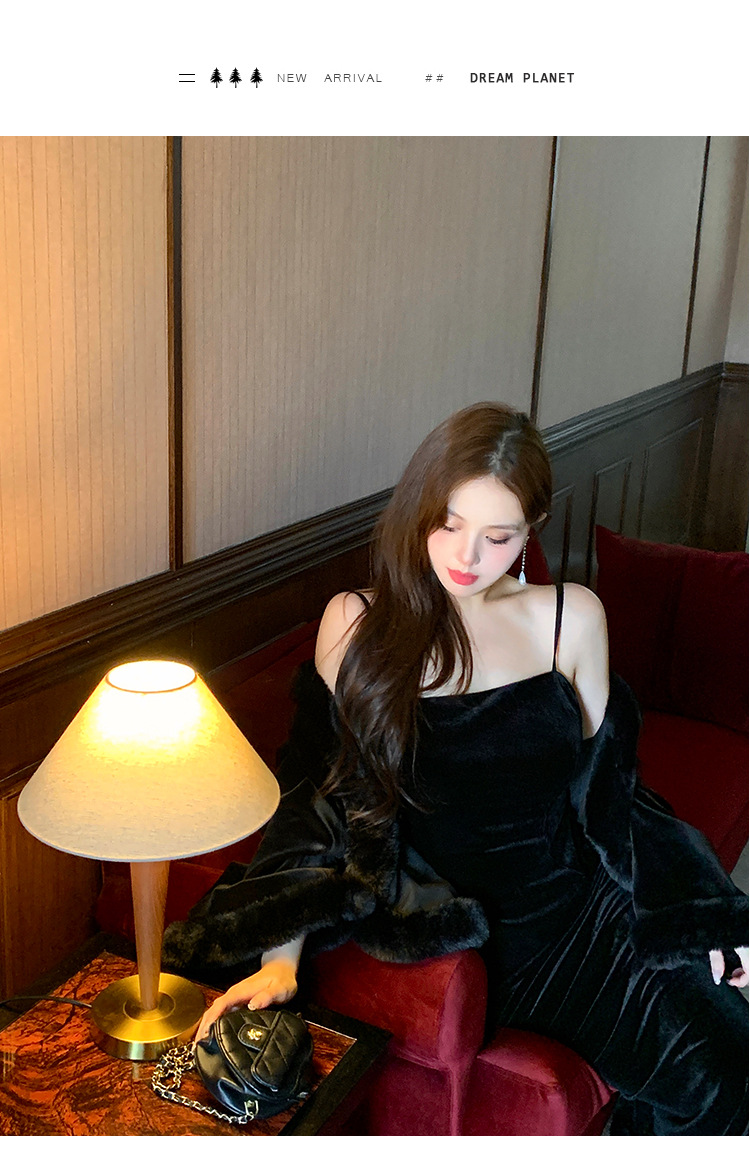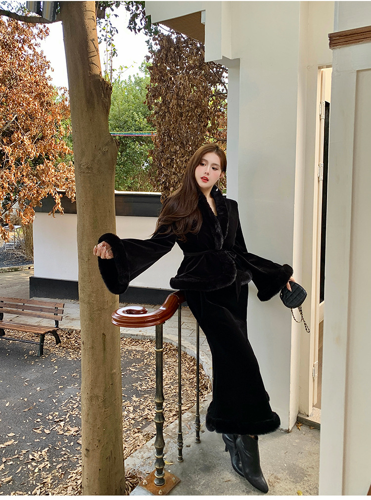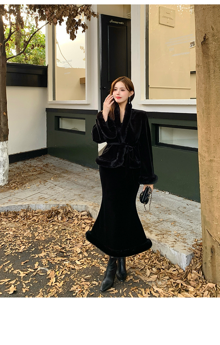 플러스 사이즈 여자 하이 엔드 프랑스 레트로 새해 가운 벨벳 세트 우아한 피쉬 테일 투피스 1991스토어 가기