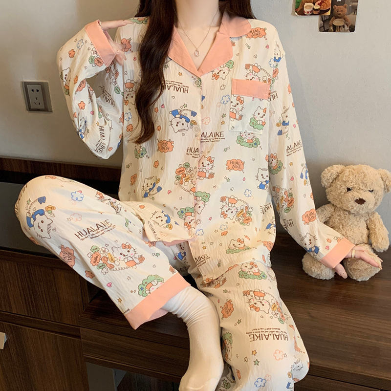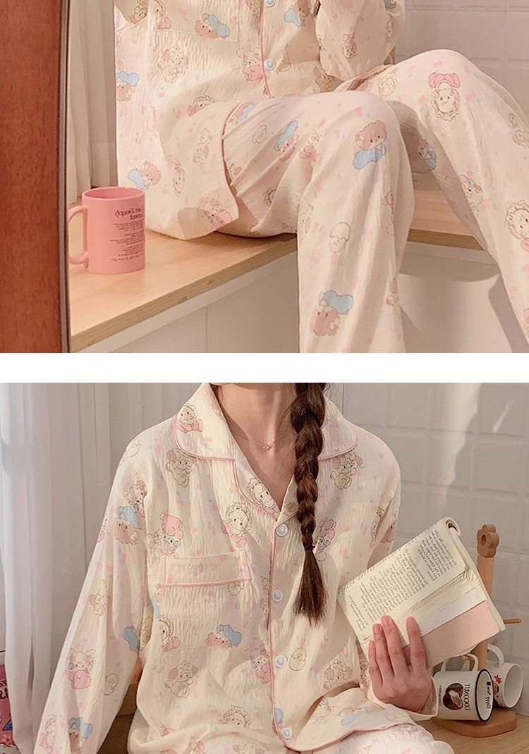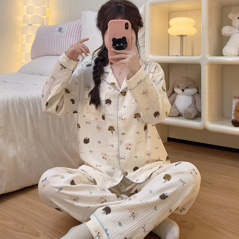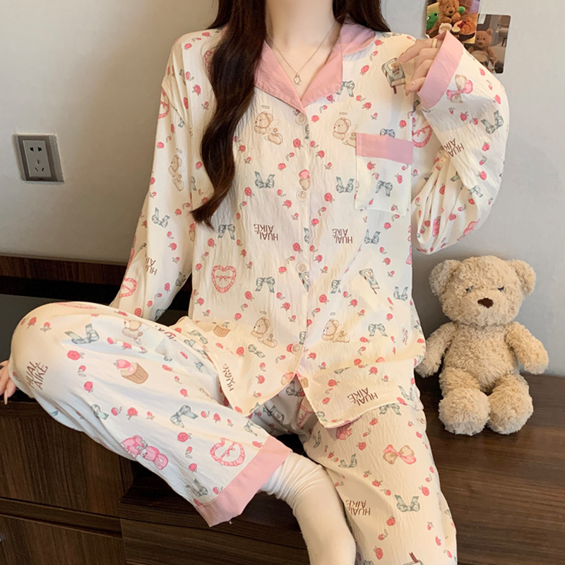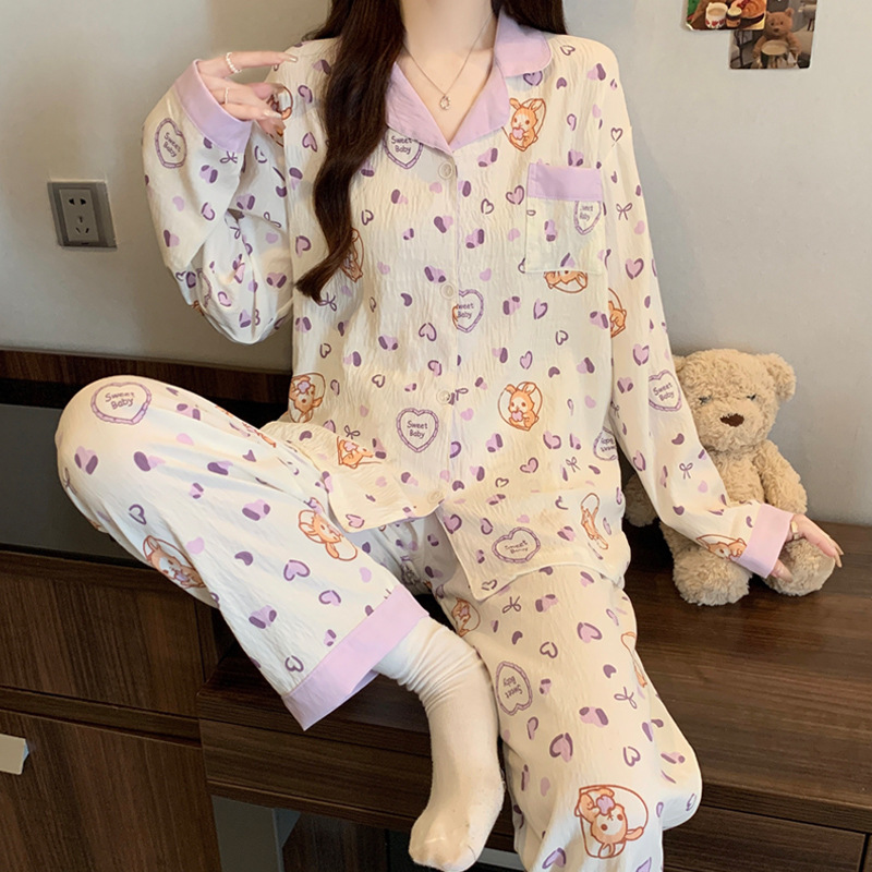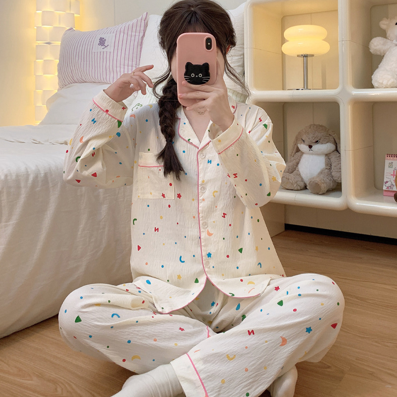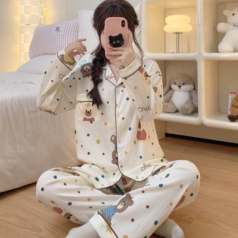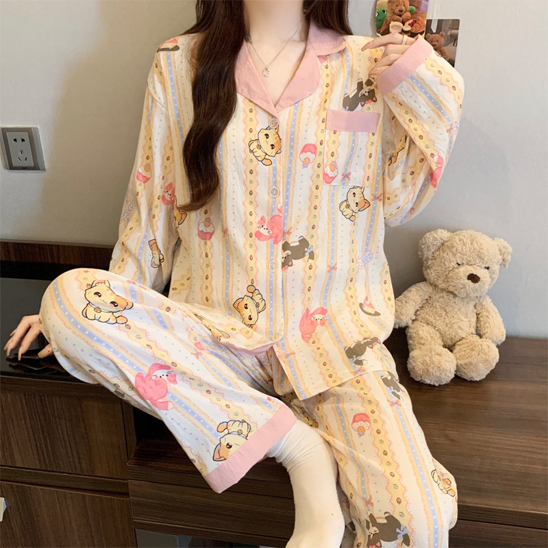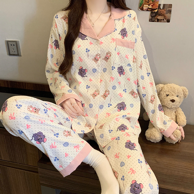 달콤한 소녀 미코 파자마 여성의 봄과 가을 구름 면 긴 소매 귀여운 학생 홈 옷 2 피스 세트 도매스토어 가기