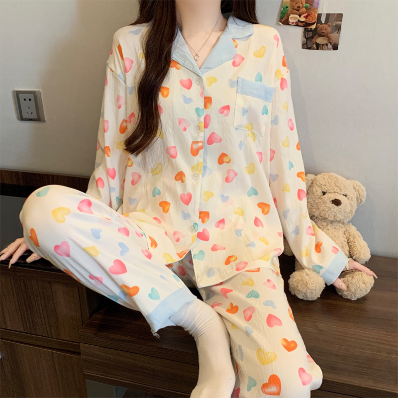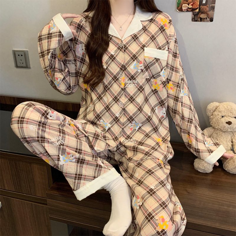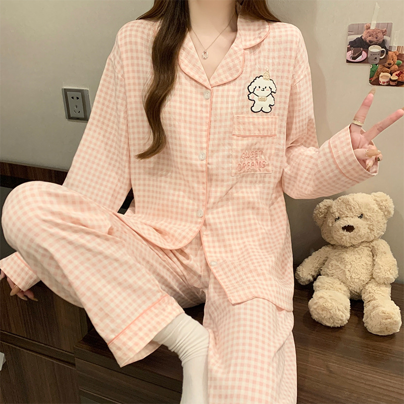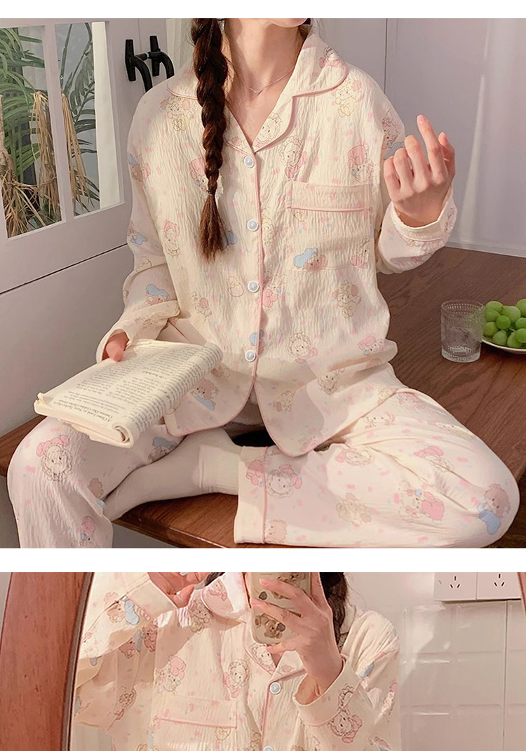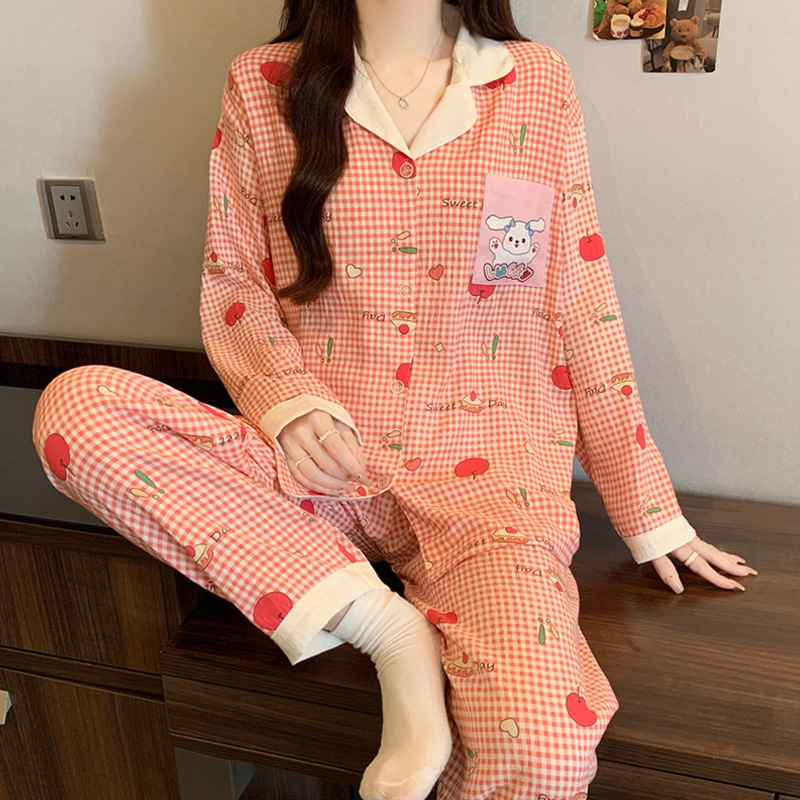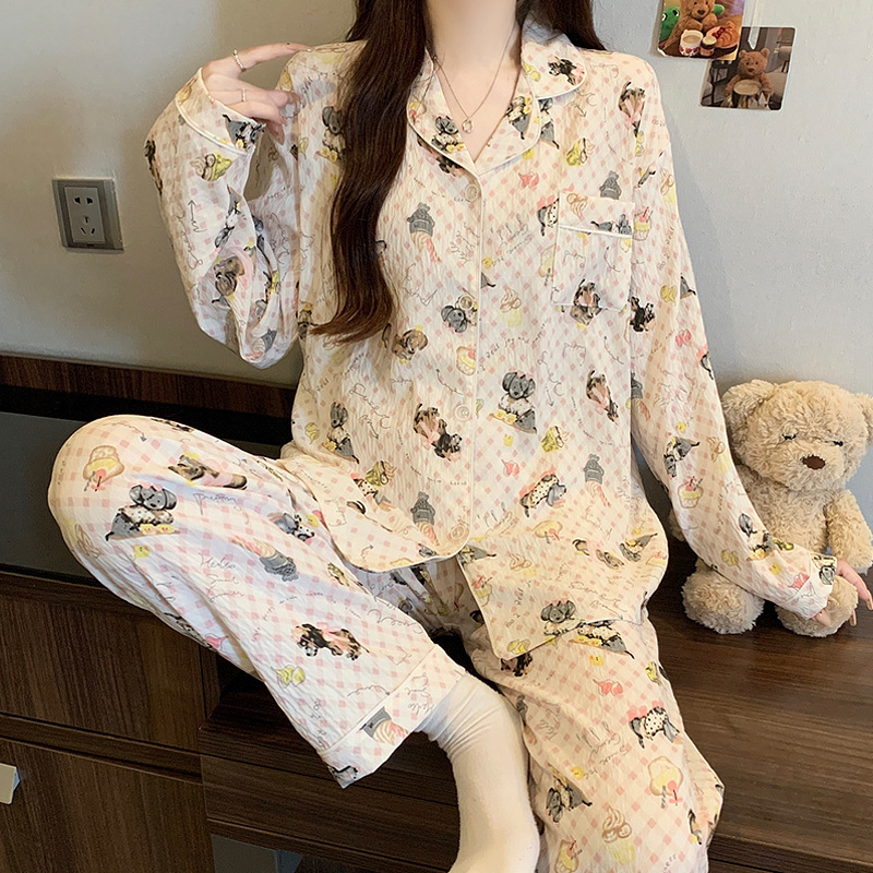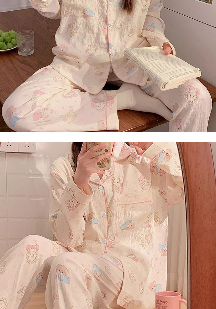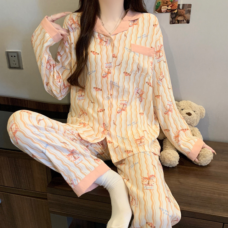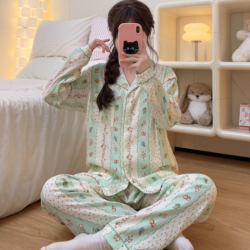 달콤한 소녀 미코 파자마 여성의 봄과 가을 구름 면 긴 소매 귀여운 학생 홈 옷 2 피스 세트 도매스토어 가기