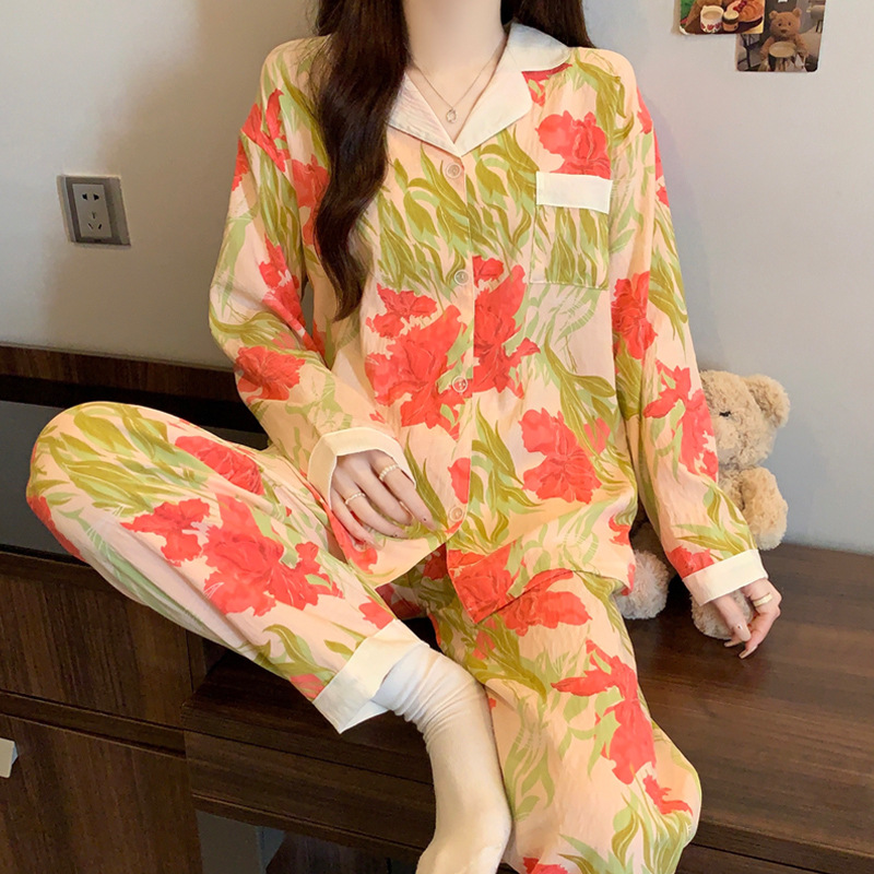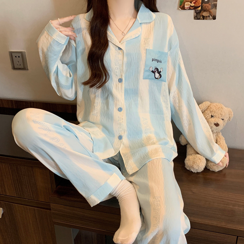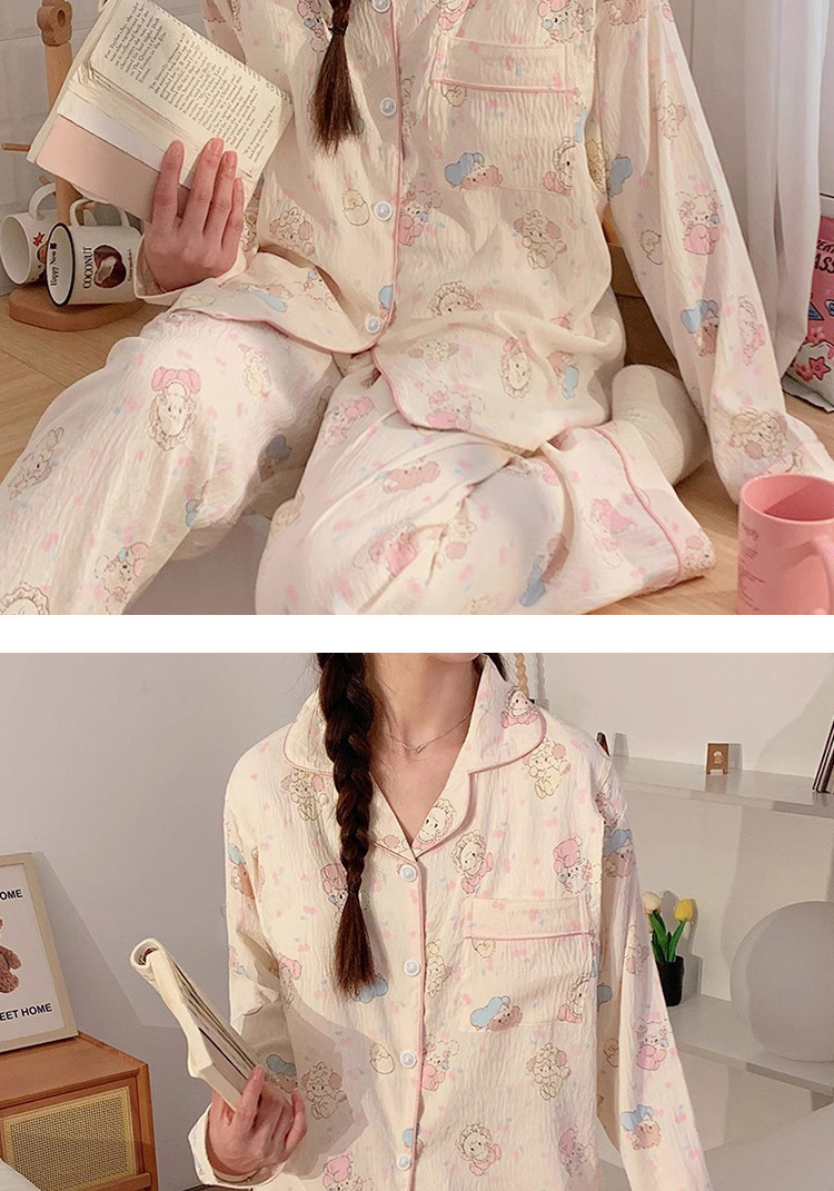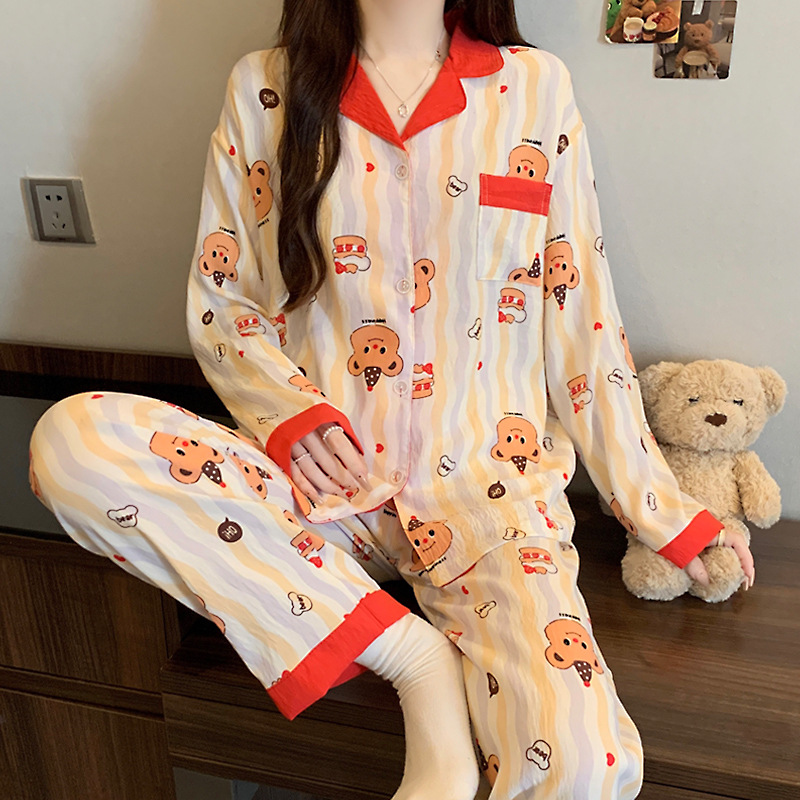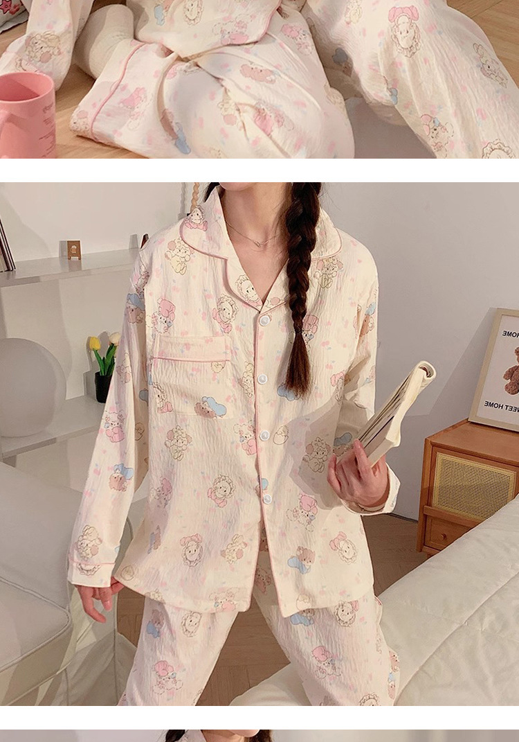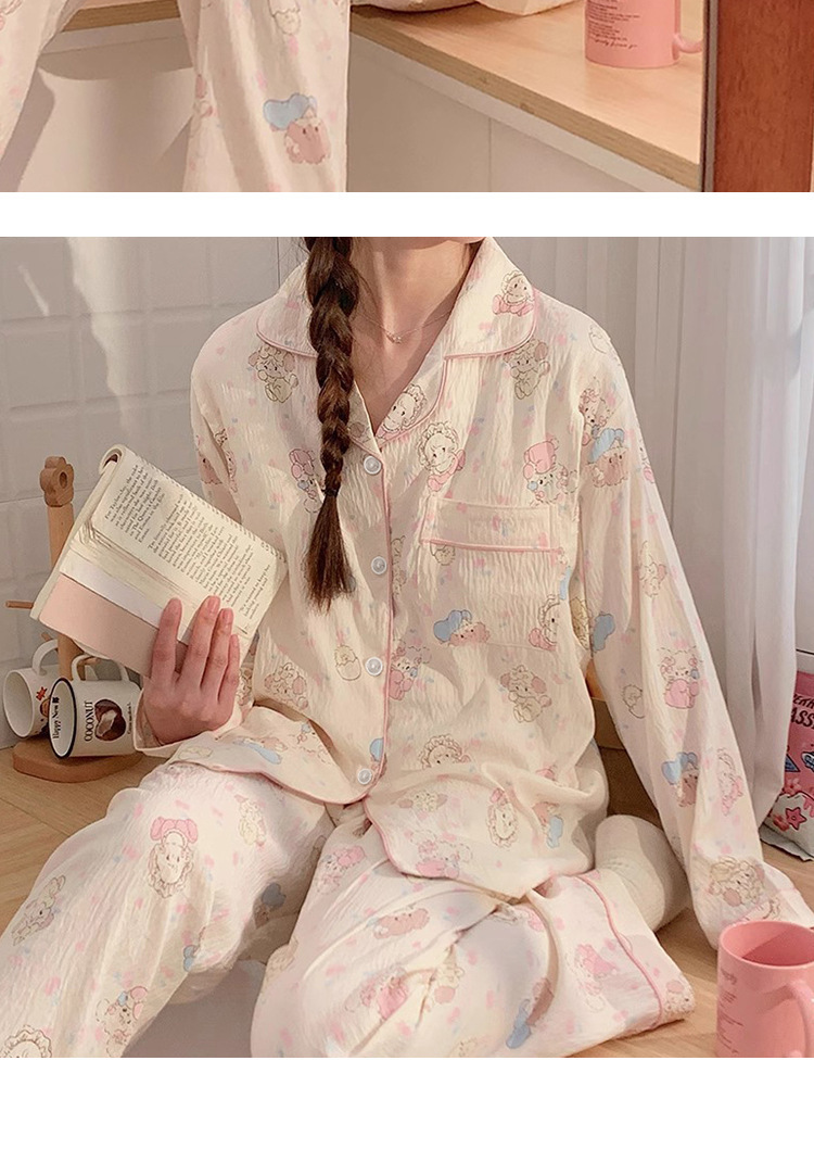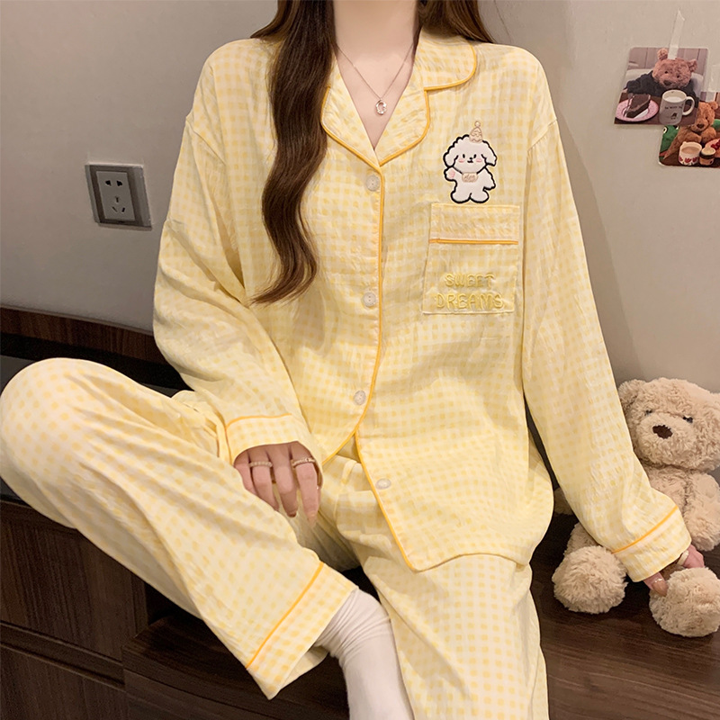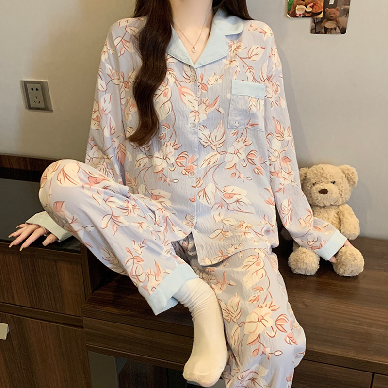 달콤한 소녀 미코 파자마 여성의 봄과 가을 구름 면 긴 소매 귀여운 학생 홈 옷 2 피스 세트 도매스토어 가기