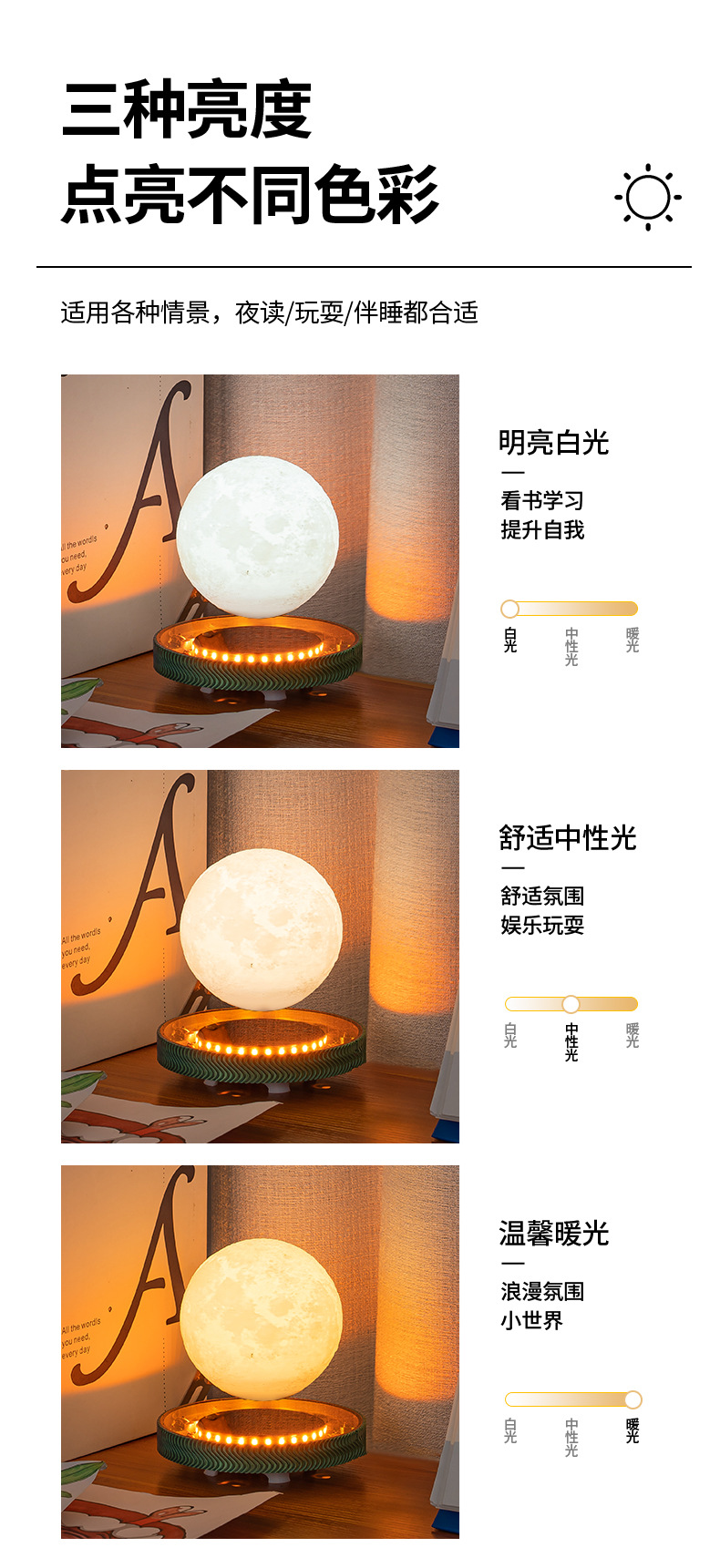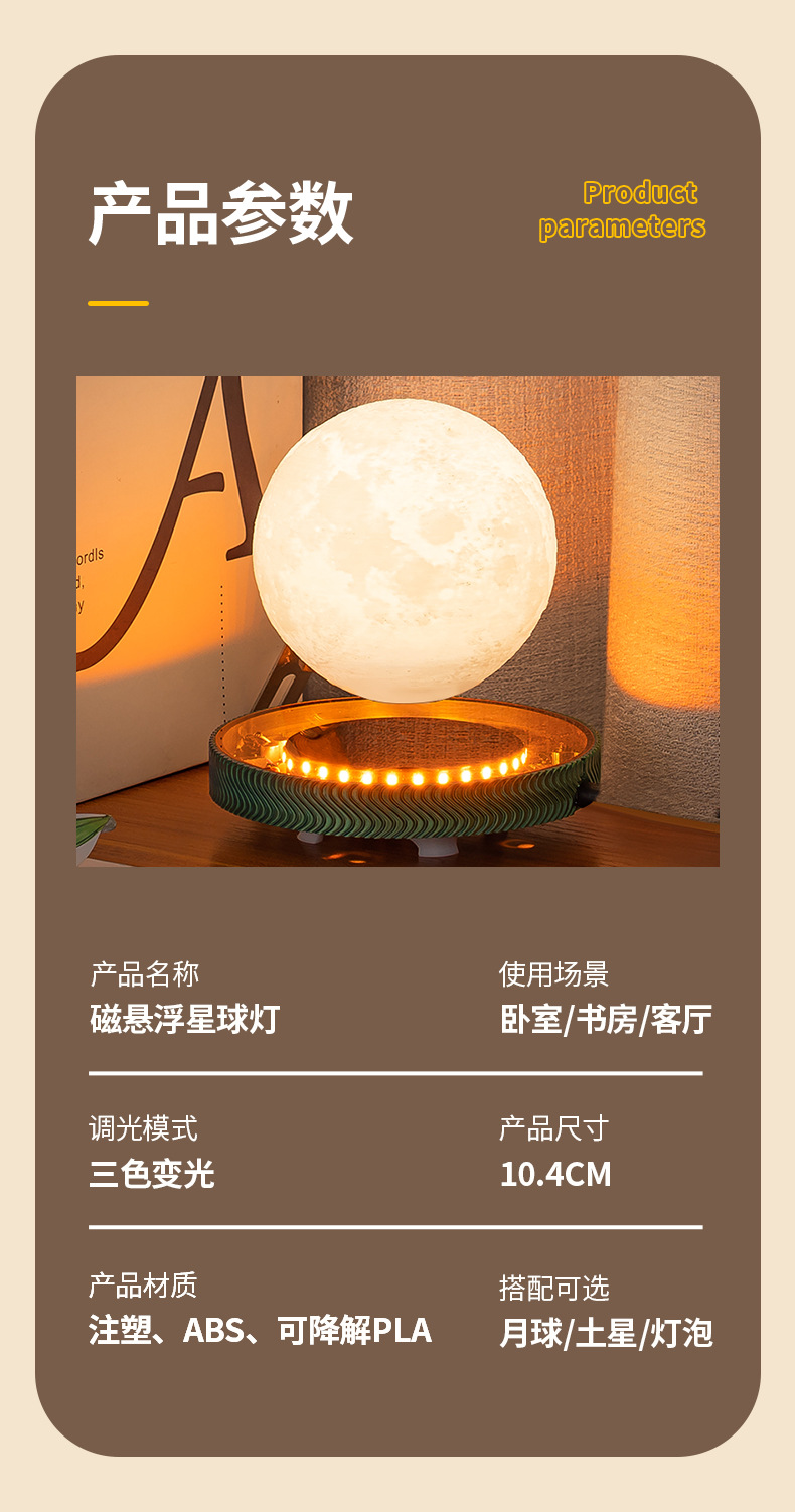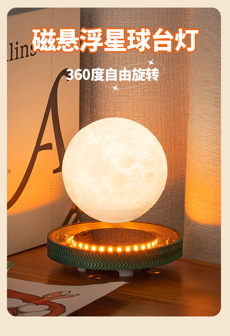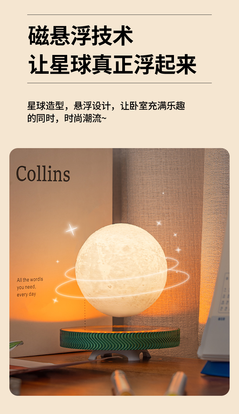 새로운 자기 부상 달빛 공 토성 밤 빛 분위기 장식품 크리스마스 선물 생일 선물 도매
