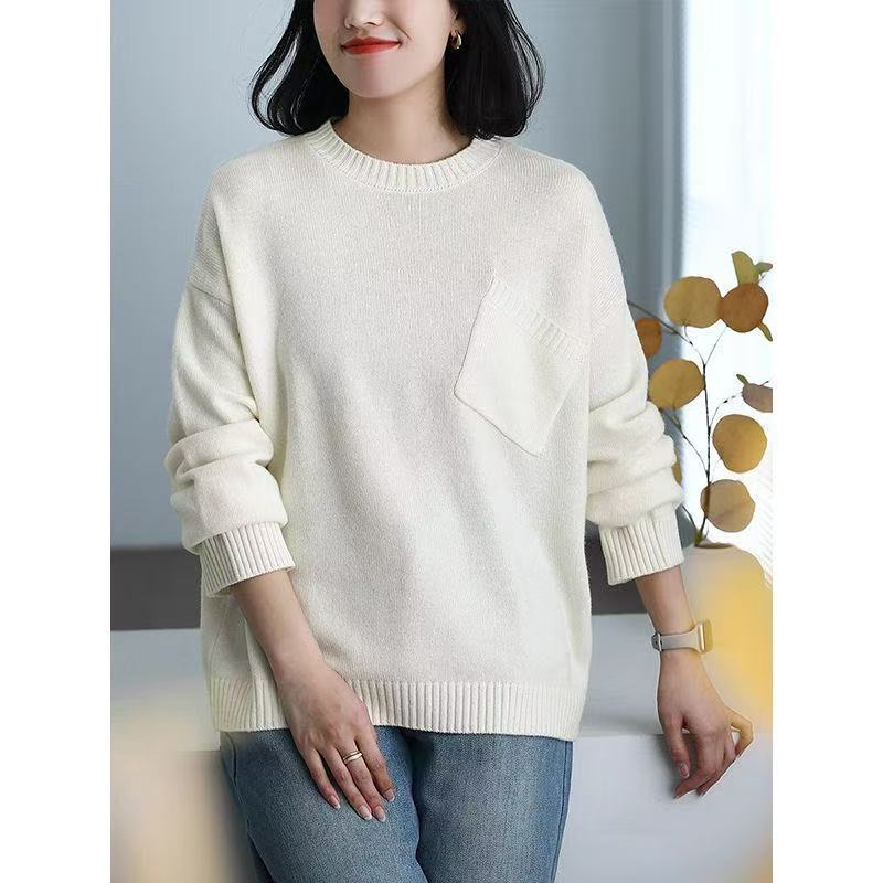 겨울 새로운 양모 크루 넥 스웨터 예술적 캐주얼 느슨한 슬리밍 소프트 왁스 스트레치 스웨터 413