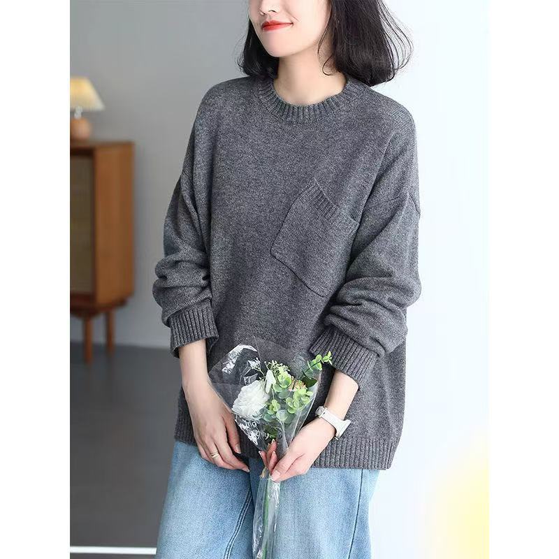 겨울 새로운 양모 크루 넥 스웨터 예술적 캐주얼 느슨한 슬리밍 소프트 왁스 스트레치 스웨터 413스토어 가기