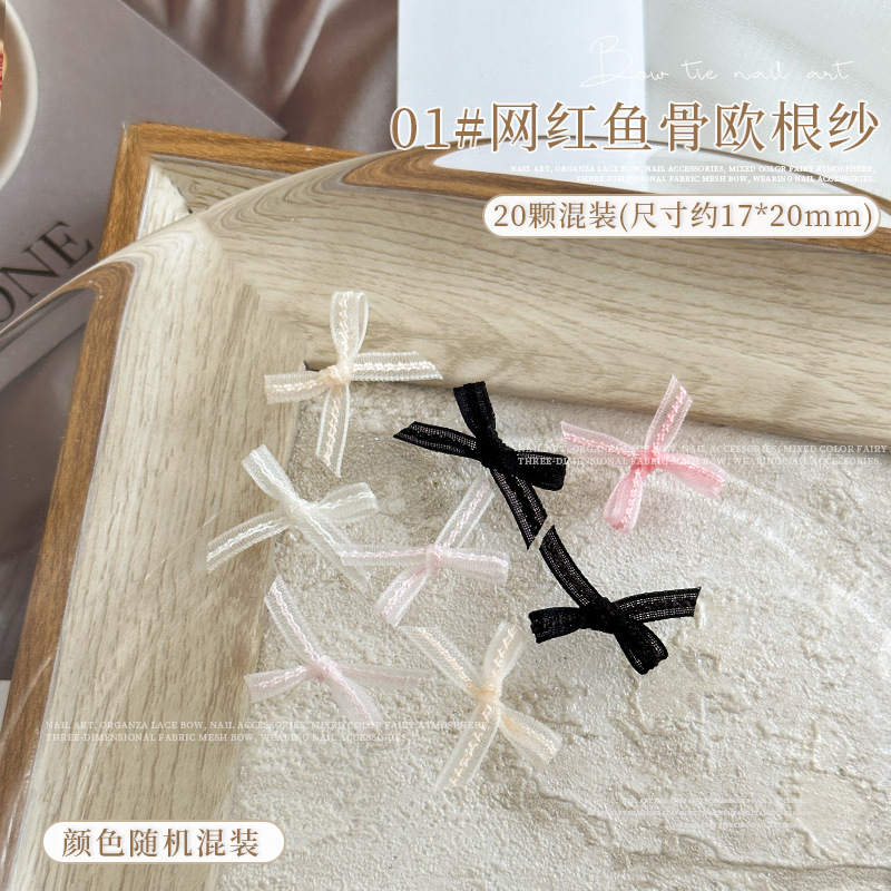 인터넷 축하 폭발성 멀티 컬러 Organza 보우 네일 장식품 실크 리본 패브릭 네일 장식품 네일 액세서리