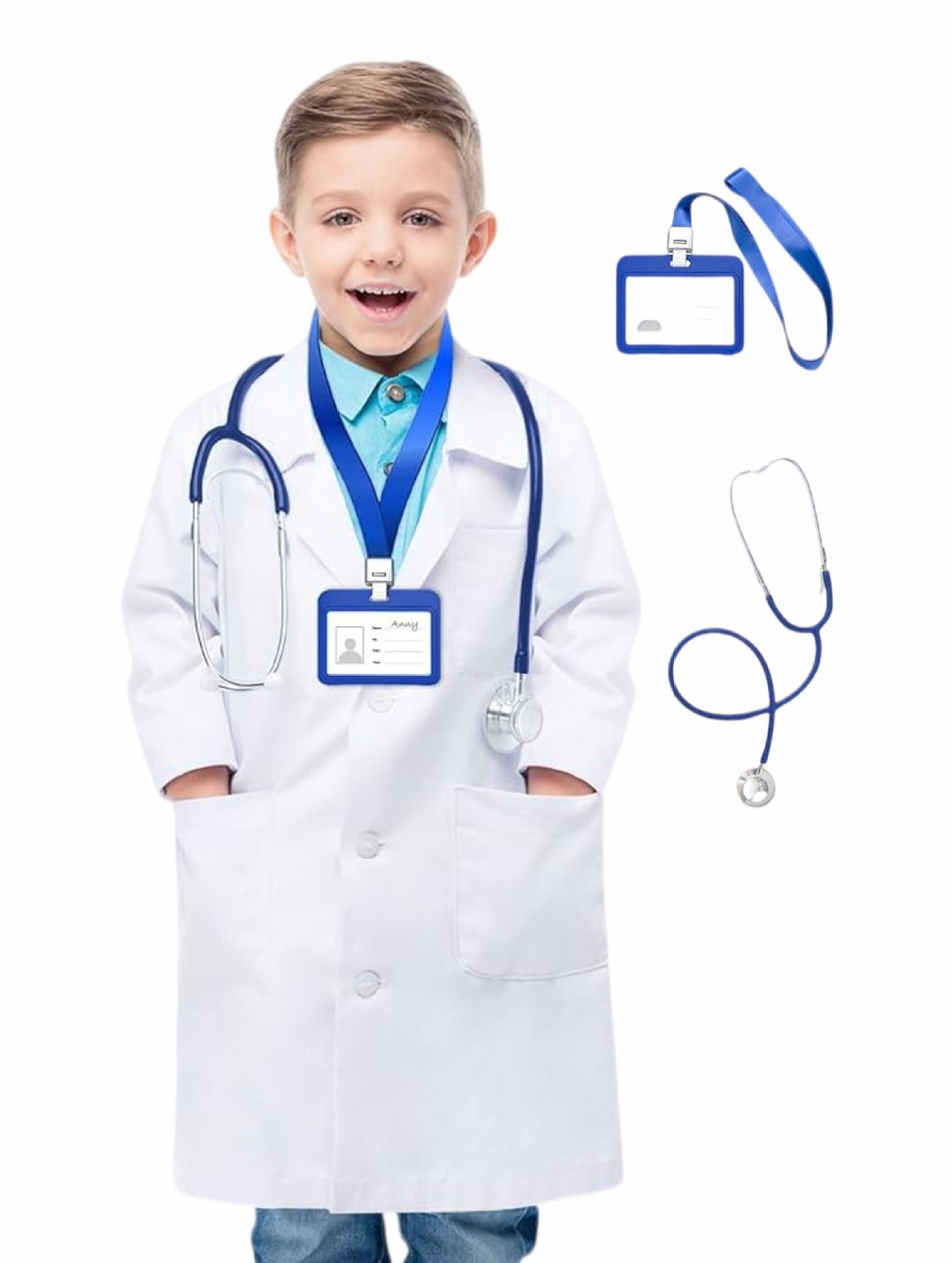 어린이 의사 의류 화이트 코트 작업 허가 실험실 코트 어린이 원피스 의류 전문 역할 놀이스토어 가기
