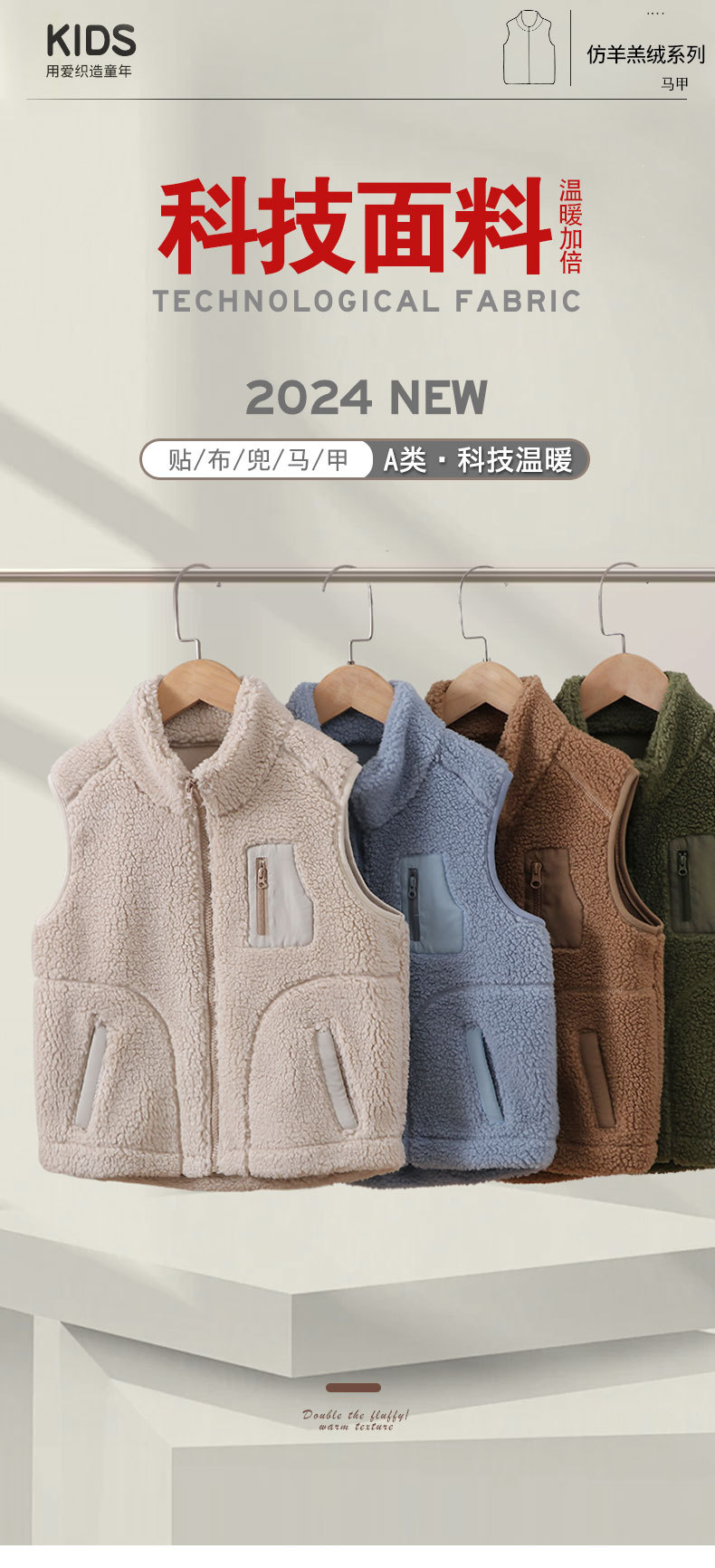 어린이 양고기 양털 조끼 가을과 겨울 소녀 양털 기모 조끼 소년 중대형 어린이 두꺼운 따뜻한 말벌