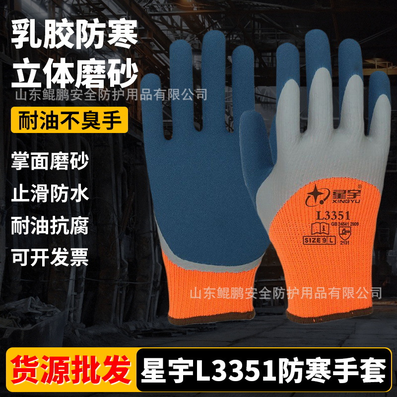 도매 Xingyu L3352 방한 장갑 플러스 벨벳 탄성 노동 보호 딥 고무 내마모성 방수 고무 300 건설 현장 보호스토어 가기