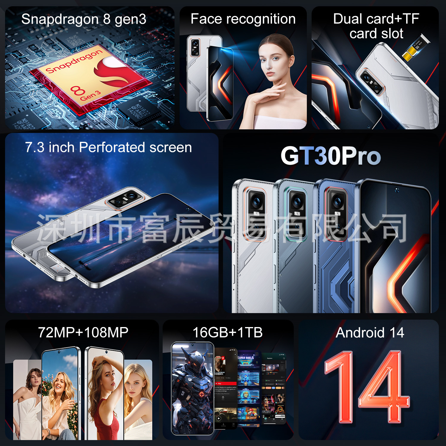 국경을 넘는 신제품 GT30 Pro, 펀칭 디자인 7.3inch 대형 화면 안드로이드14, 대외 무역 재고, 인기 급상승 중인 스마트폰