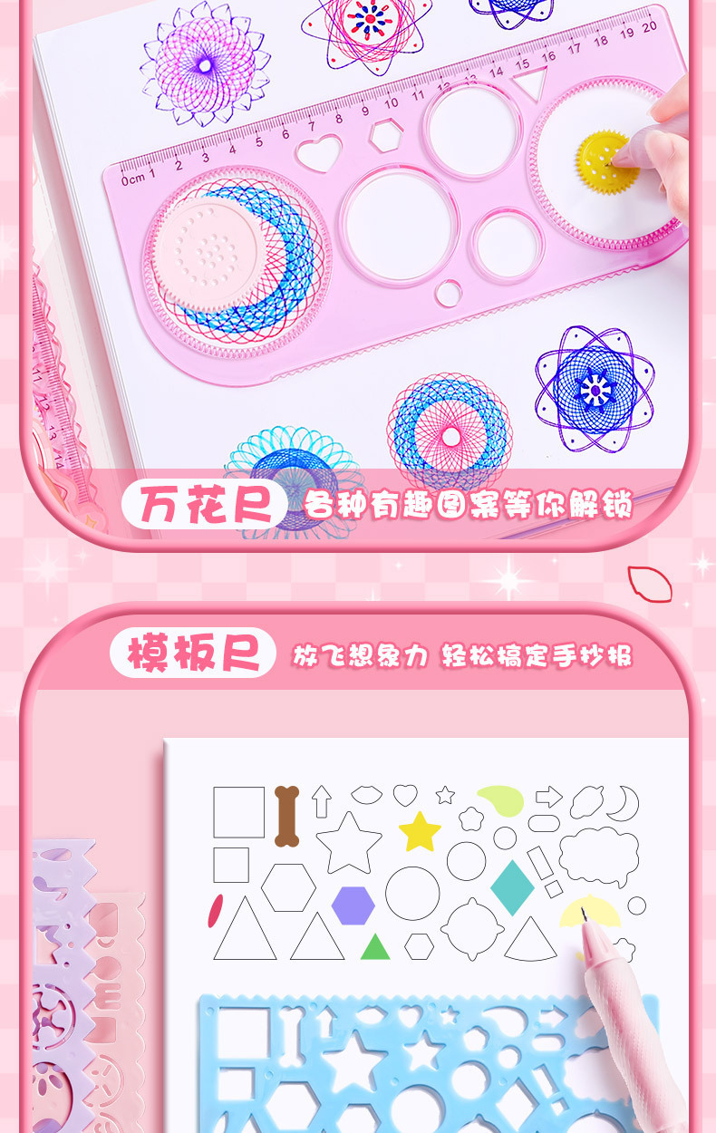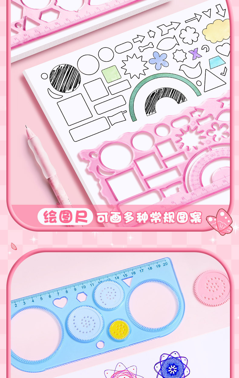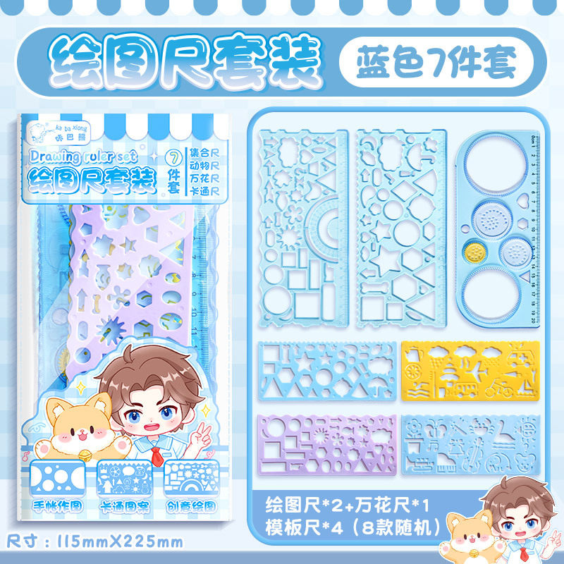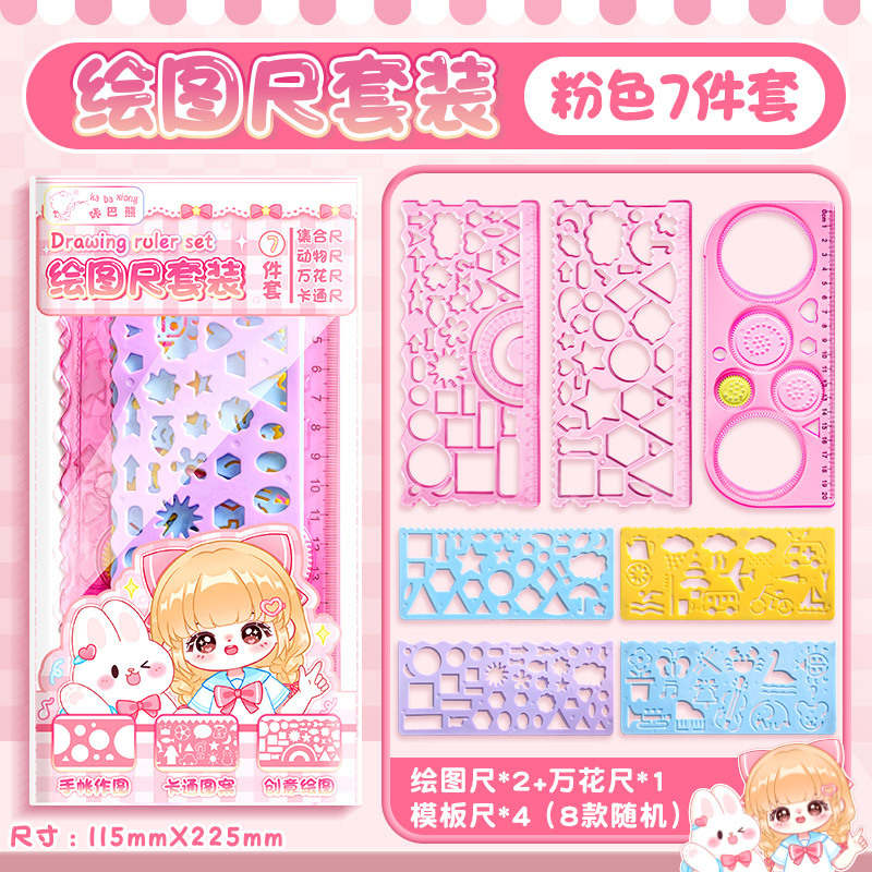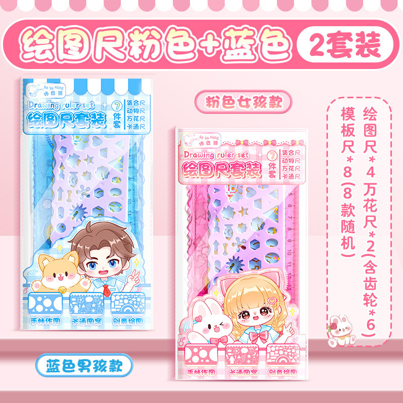 초등학생 다기능 그림 통치자 세트 통치자 만 꽃 통치자 중공 손 복사 신문 템플릿 통치자 기하학 도구스토어 가기
