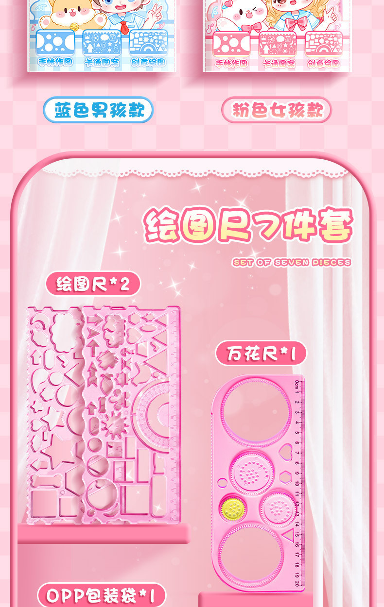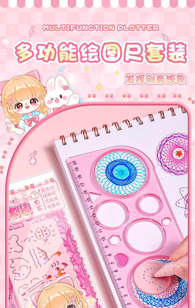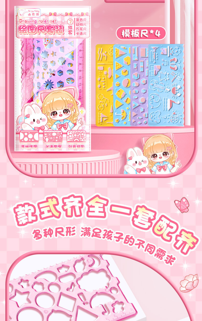초등학생 다기능 그림 통치자 세트 통치자 만 꽃 통치자 중공 손 복사 신문 템플릿 통치자 기하학 도구스토어 가기