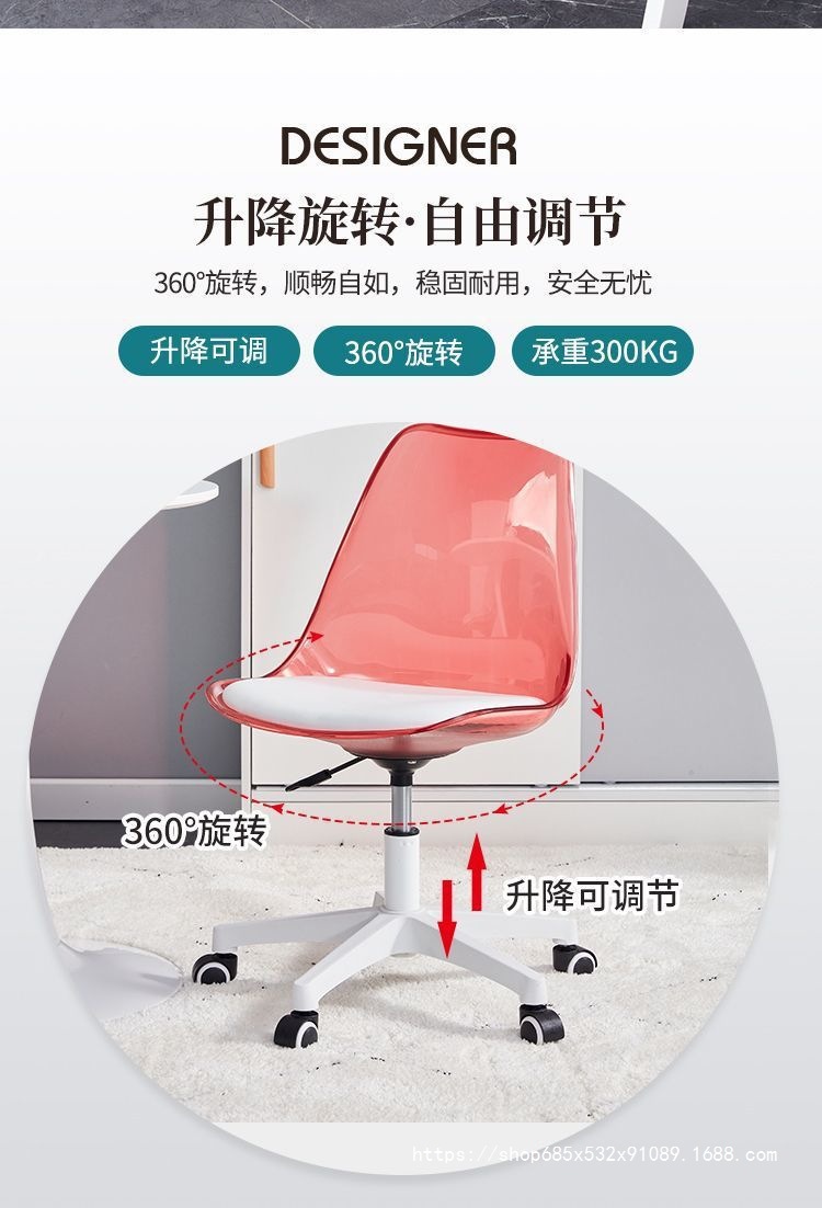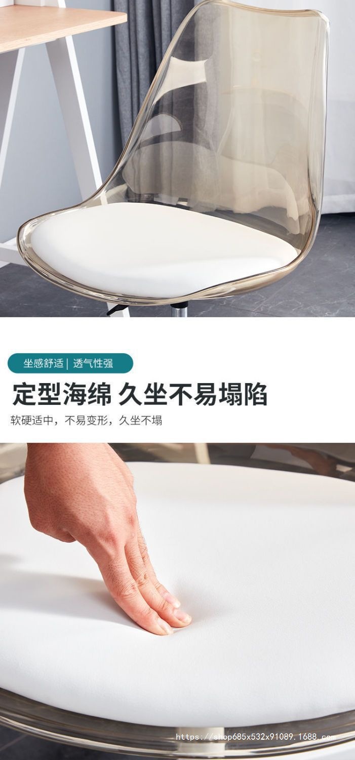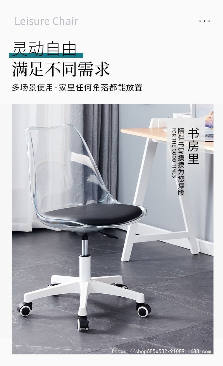 홈 컴퓨터 의자 기숙사 간단한 투명한 의자 침실 연구 회전 리프팅 등받이 의자 사무실 연구 의자