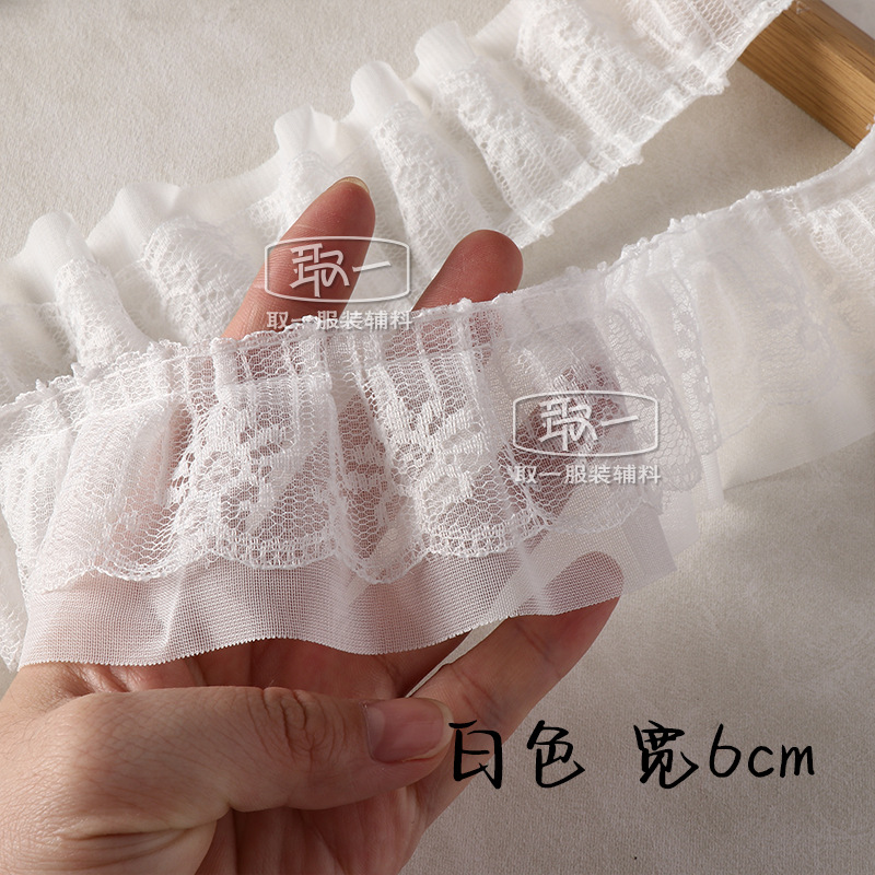 6cm 폭 더블 레이어 흑백 레이스 스노우 거즈 레이스 3 차원 100 주름 의류 커프 스커트 네크 라인 액세서리