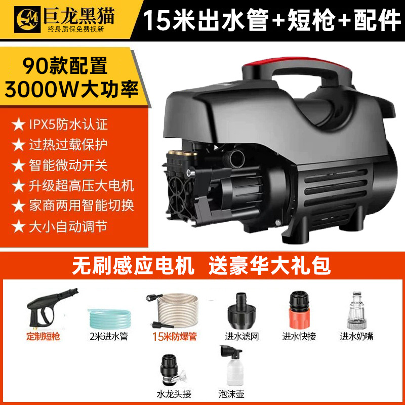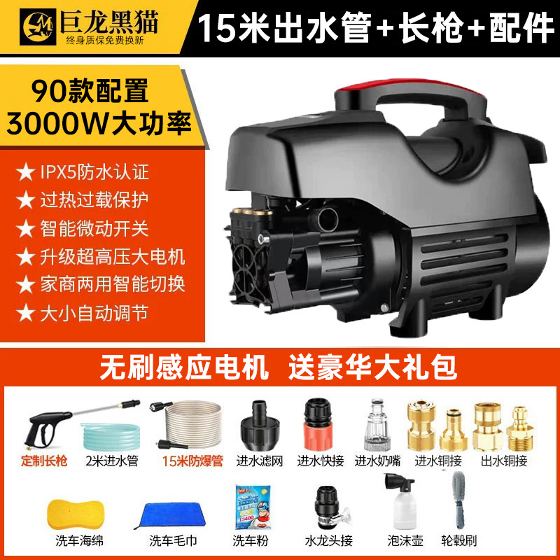 • [시적 압력] [브러시리스 유도 순수 구리 코어 모터 3800W] 15m 방폭 튜브 + 부스터 장총 + 이중 구리 연결 + 액세서리 세차 선물 가방