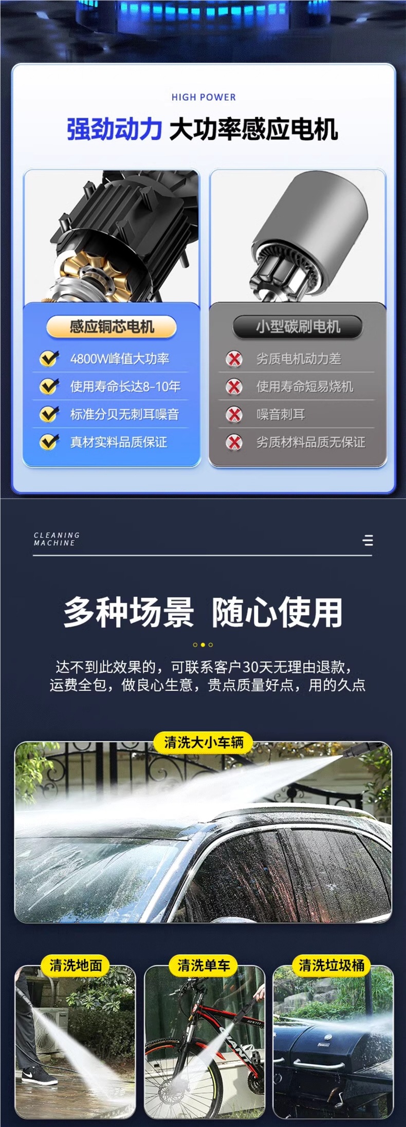• [시적 압력] [브러시리스 유도 순수 구리 코어 모터 3800W] 10m 방폭 튜브 + 부스터 장총 + 이중 구리 연결 + 액세서리 세차 선물 가방