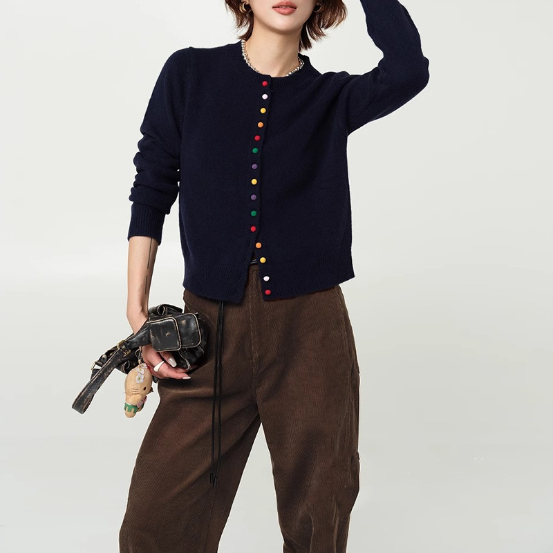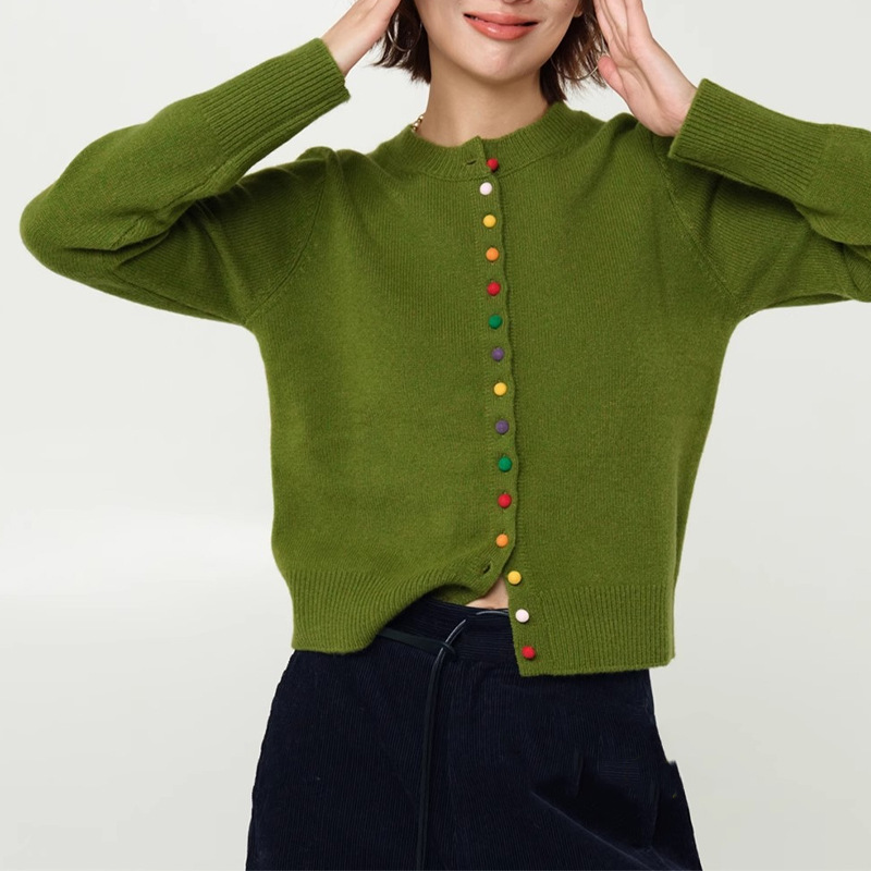 멀티 플레이트 컬러 버클 디자인/유행 느슨한 올 매치 소프트 왁스 26 순수 양모 내베이스 니트 카디건