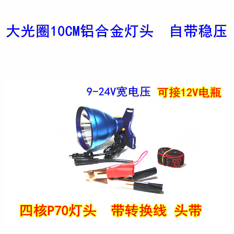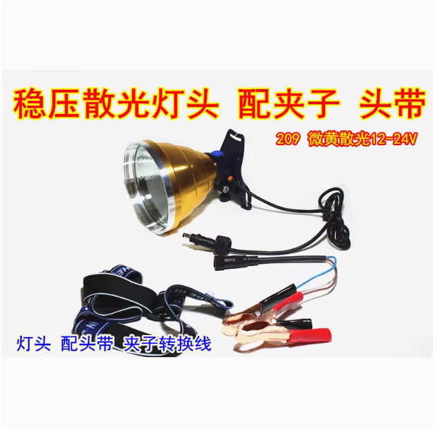 12V 볼트 헤드 램프 슈퍼 밝은 LED 강한 빛 스팟 난시 물고기 낚시 노란색 빛 P70 클램프 배터리 외부 램프 홀더