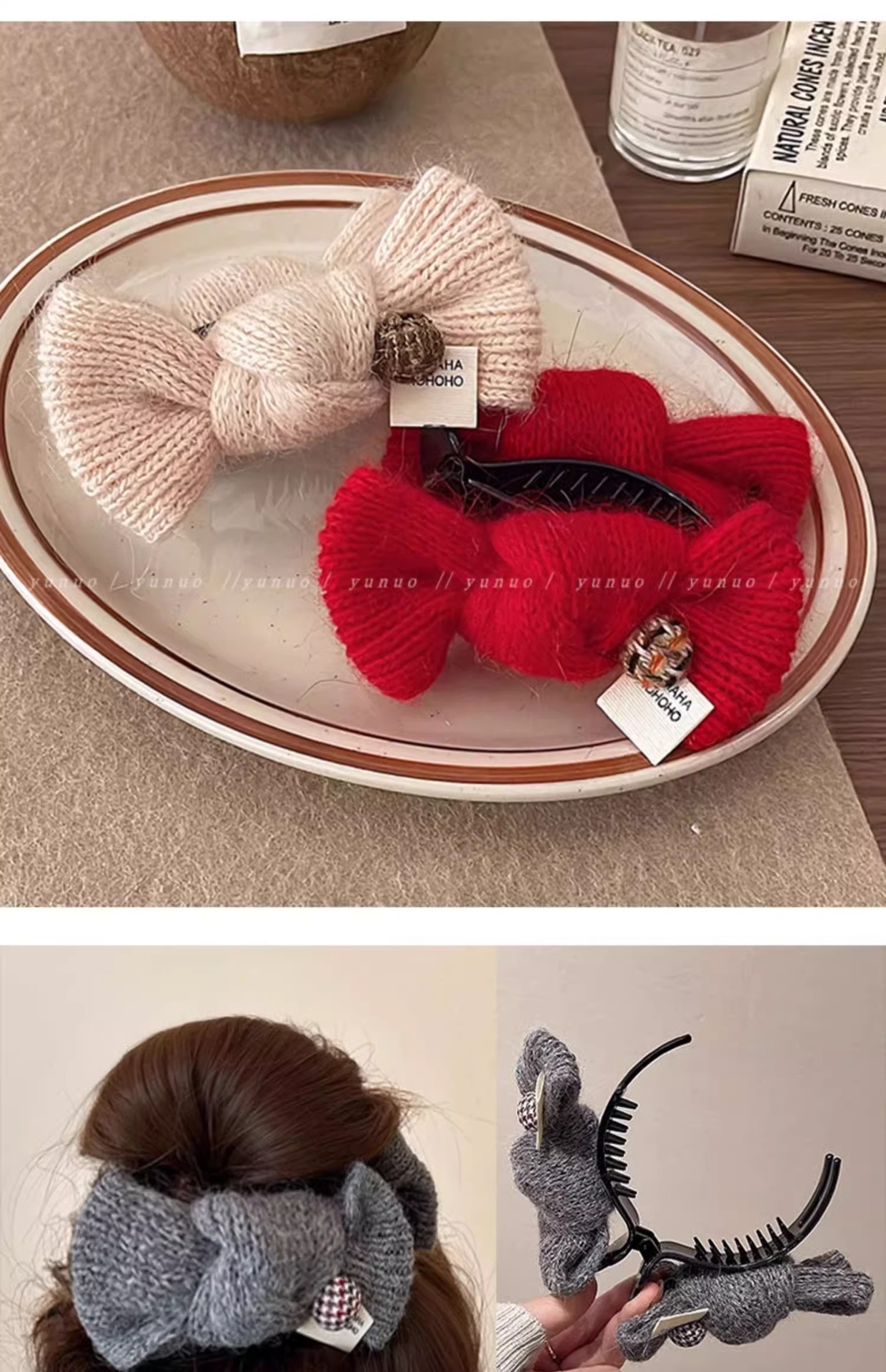 가을과 겨울 양모 활 볼 헤드 그랩 클립 여성의 2024 새로운 하이 엔드 센스 대형 헤어 클립 헤드웨어 백스토어 가기