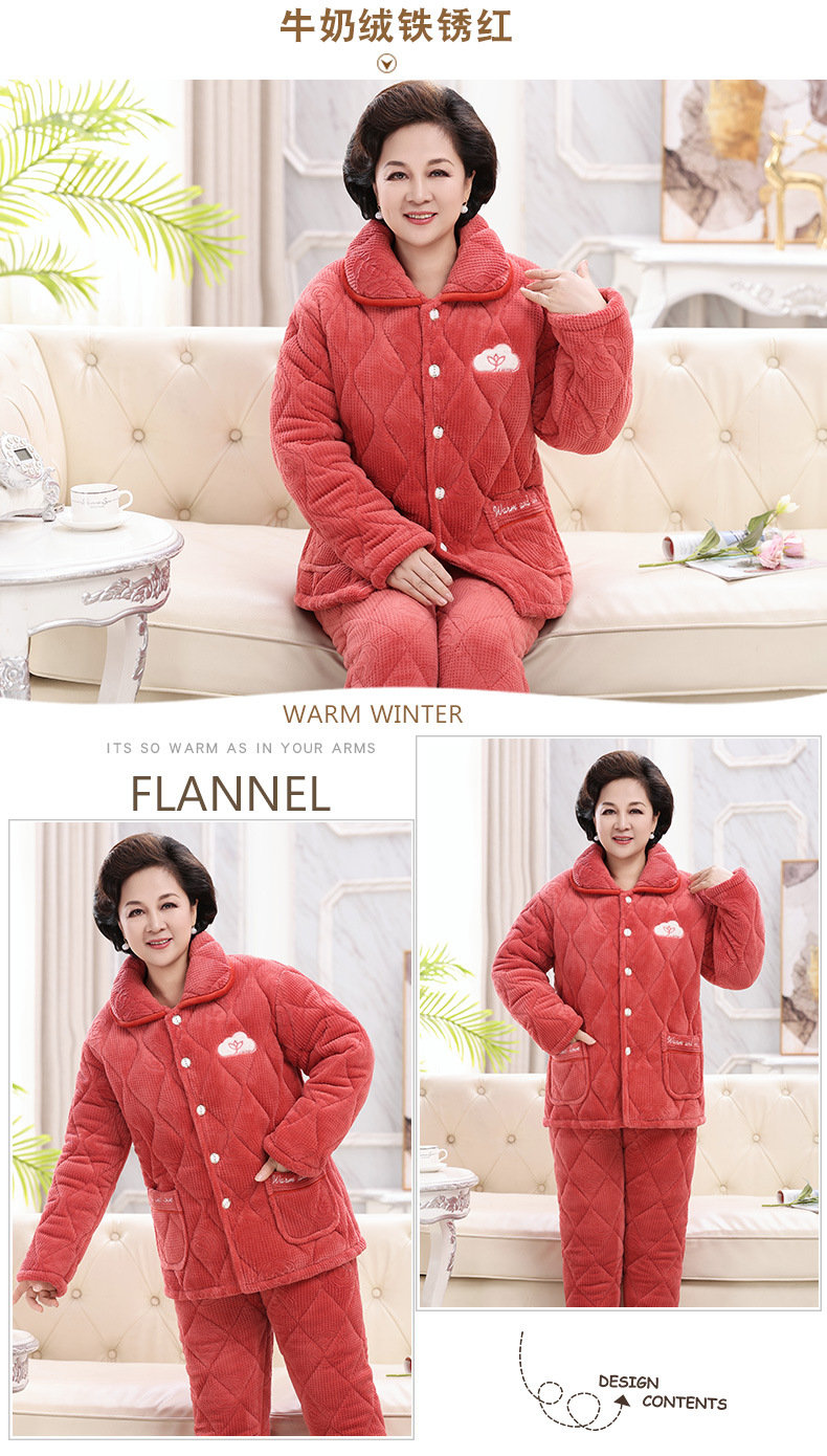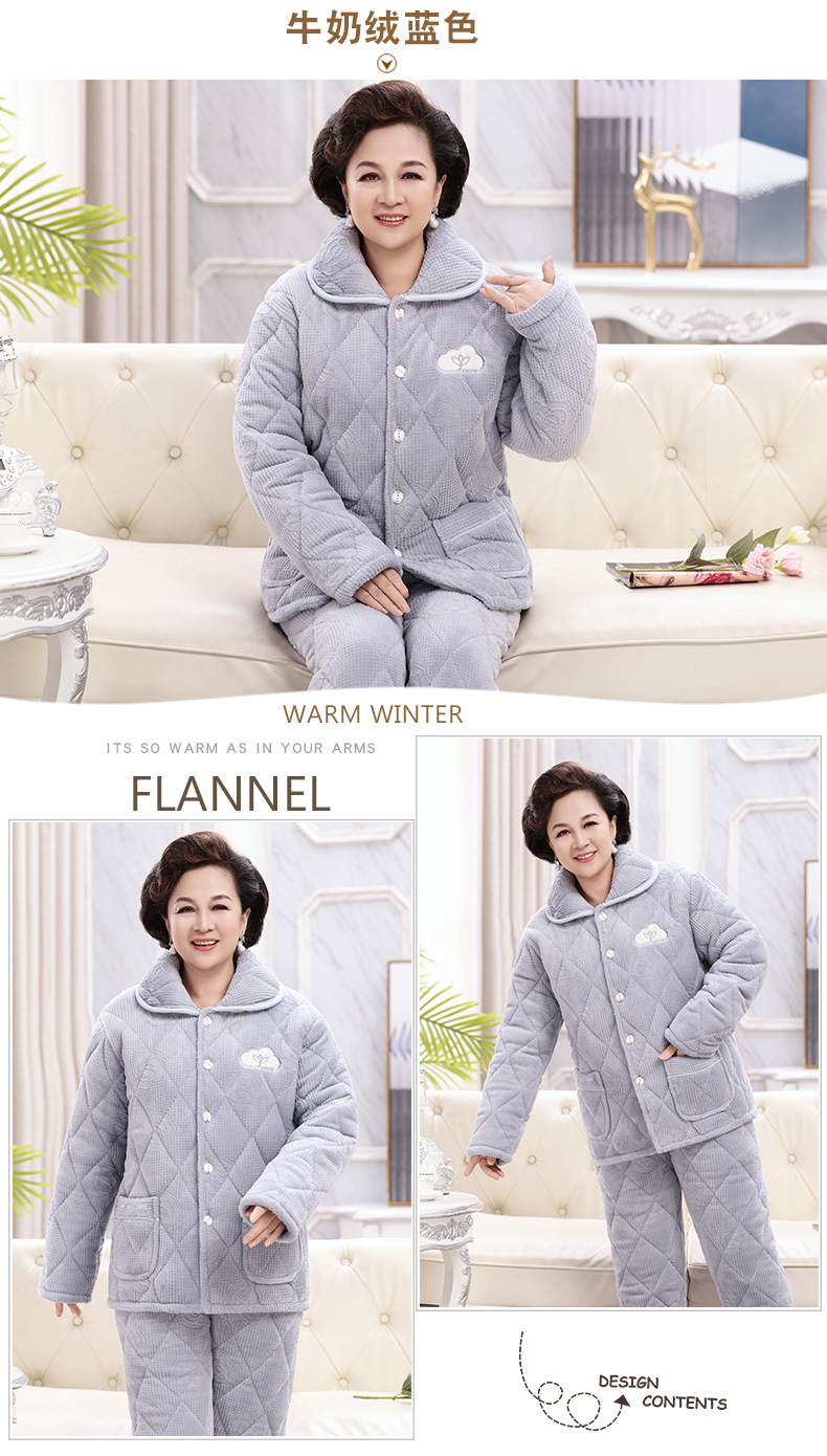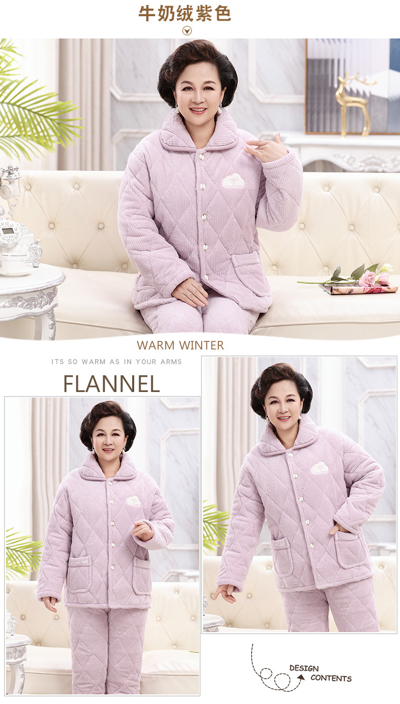 겨울 두꺼운 잠옷 여성의 중년 및 노인 어머니 3 층 면화 재킷 우유 산호 양털 따뜻한 가정 옷 세트